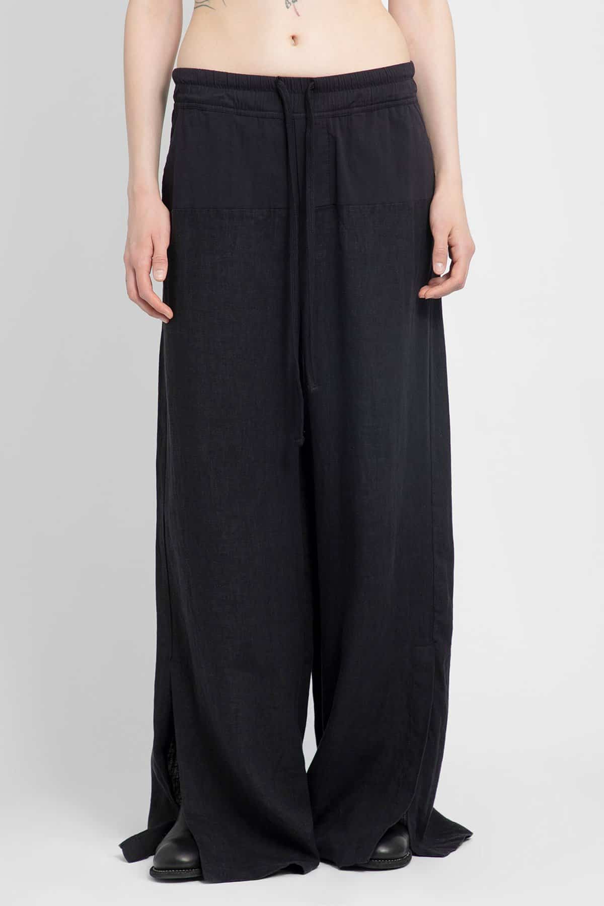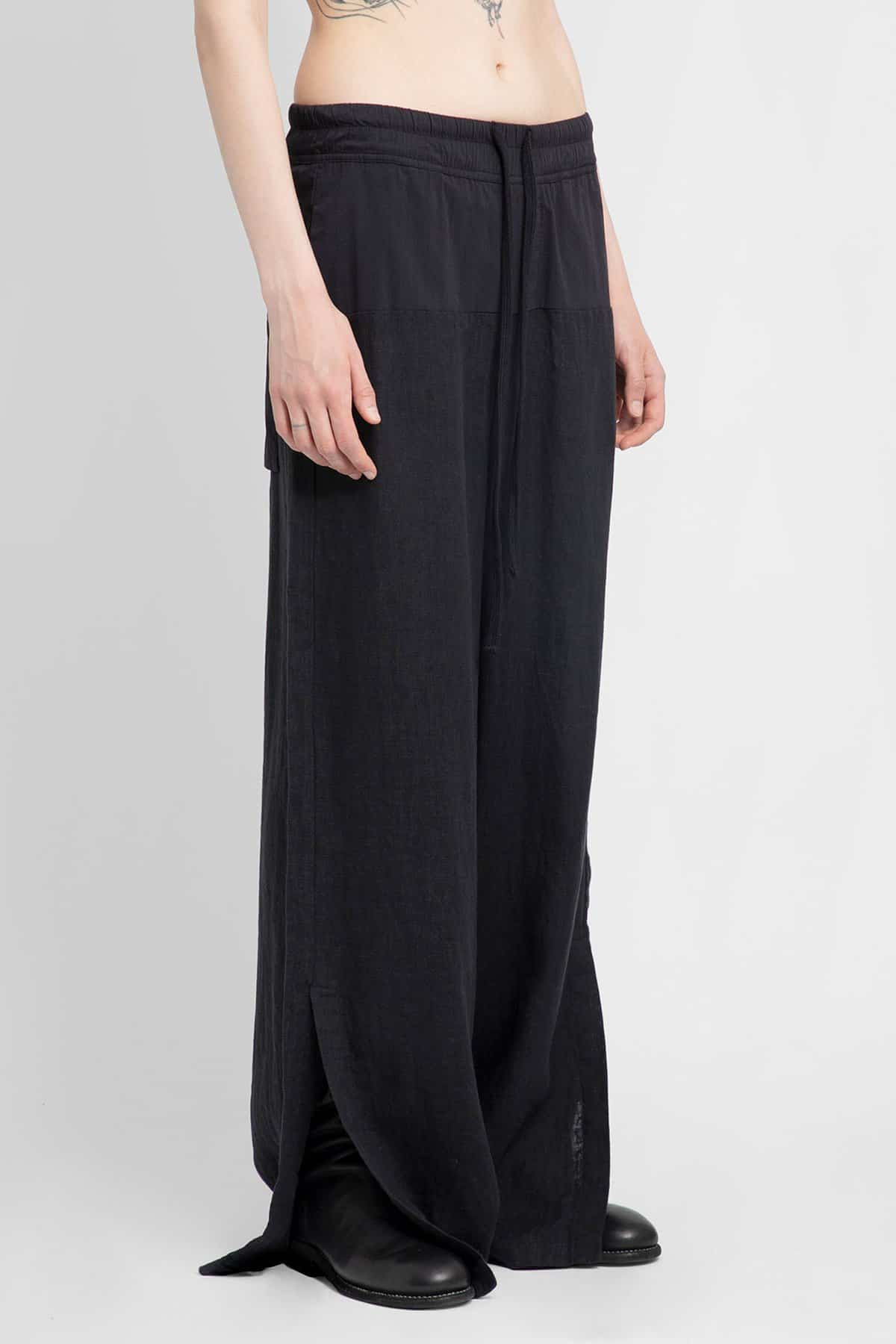 Nero Linen canvas and stretch cotton nylon Elastic waistband with drawstrings Spliced panels Side pockets Back flap pockets Hem splits Wid leg Floor length