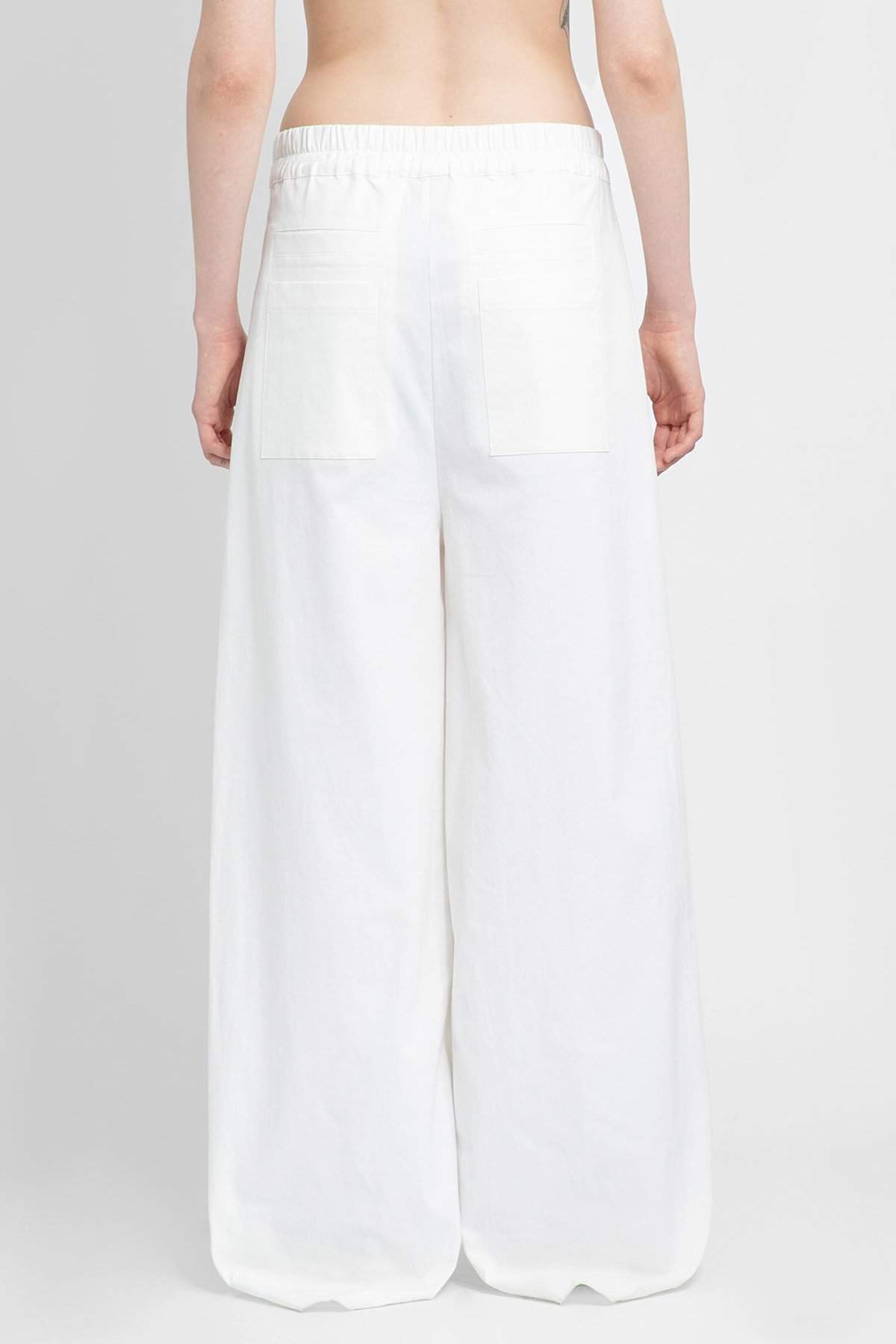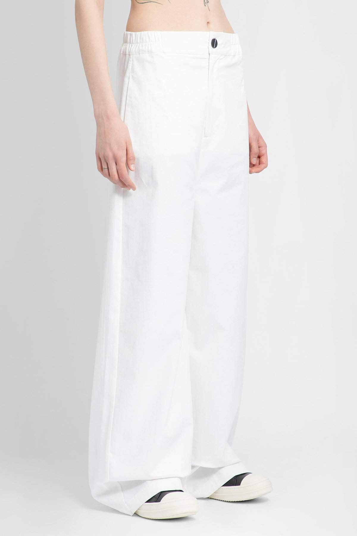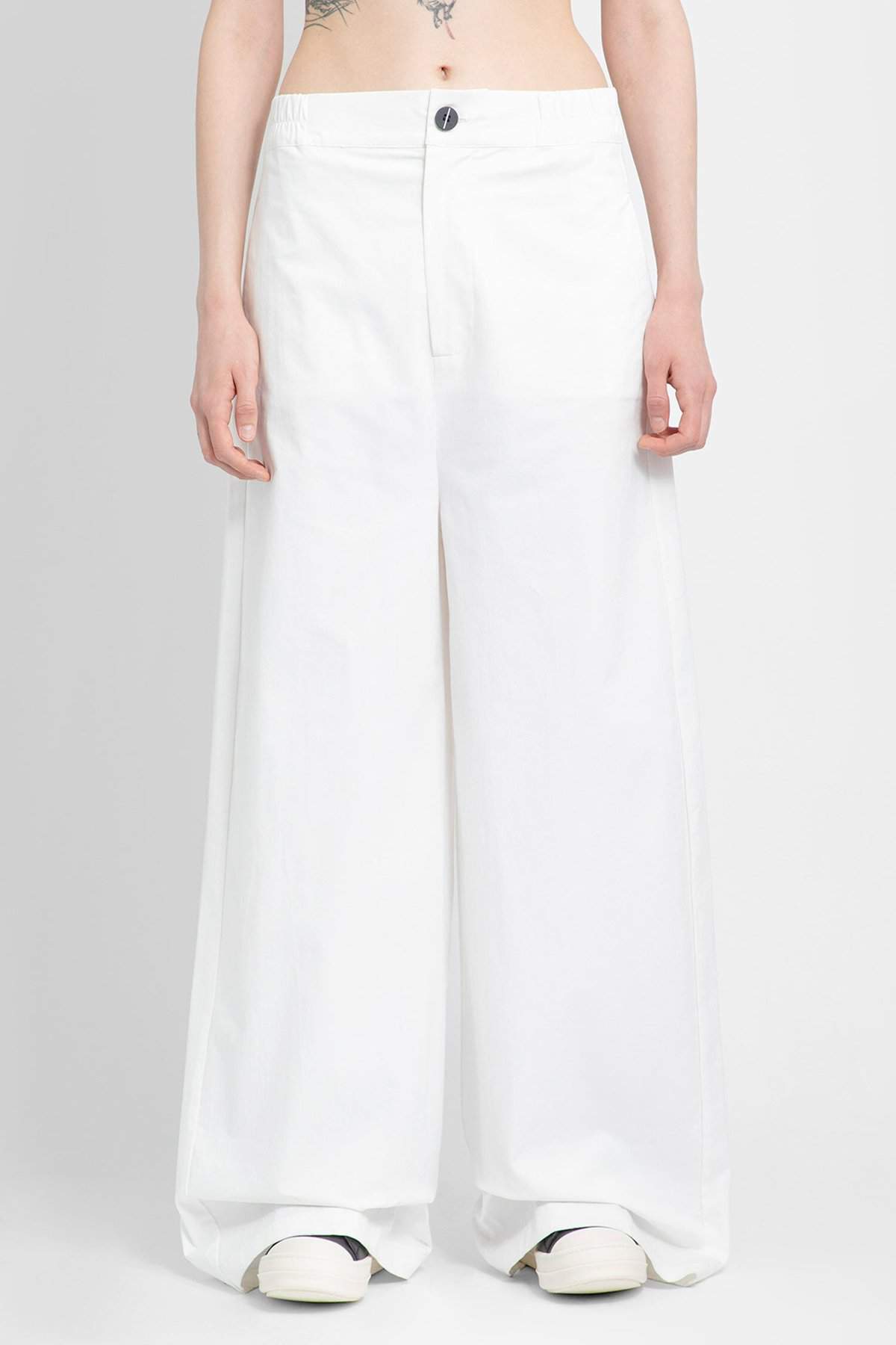 White Elastic waistband Button and zip closure Side pockets Back pockets Wide leg