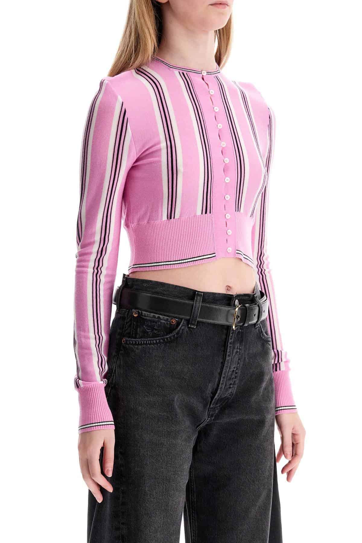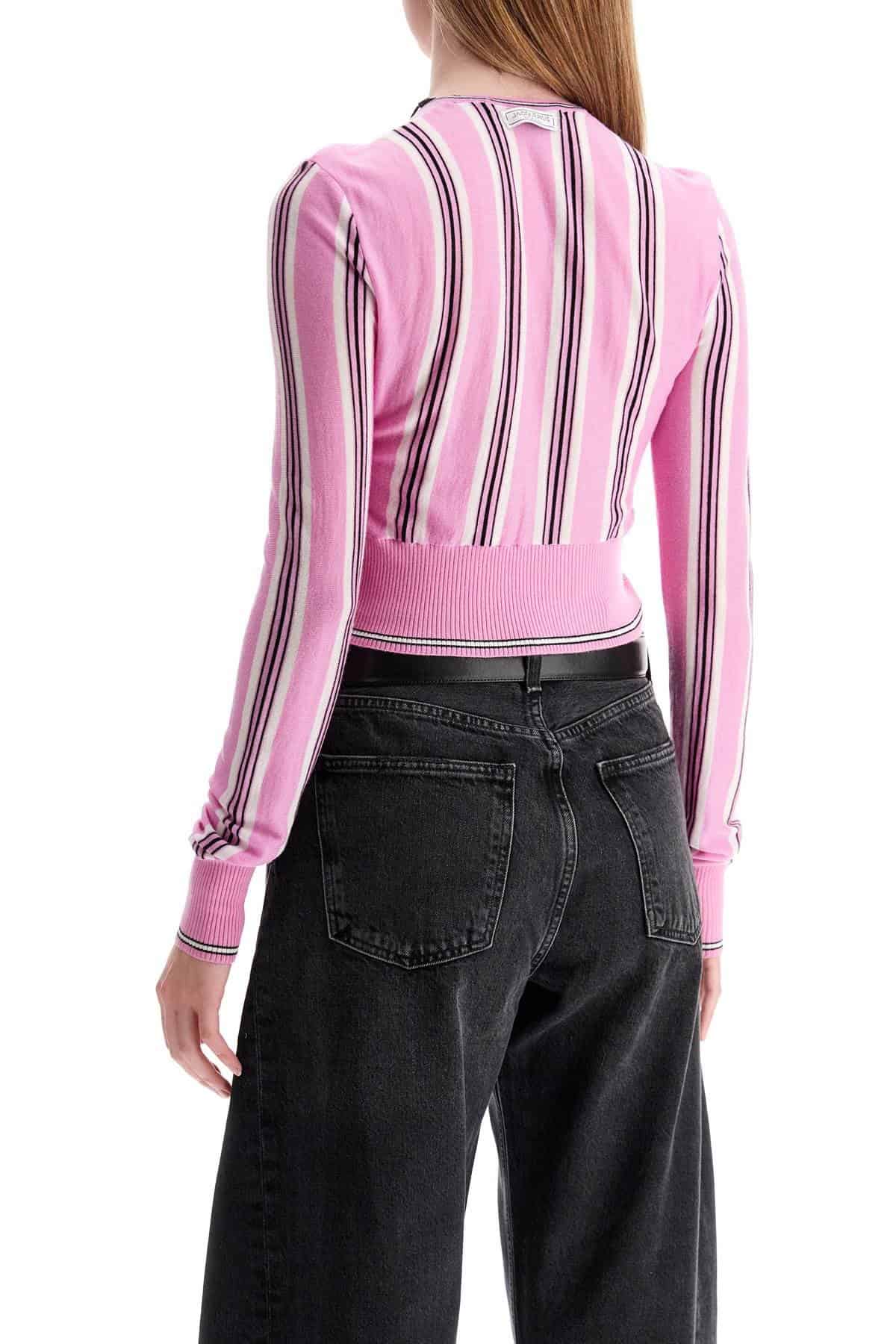 This Jacquemus cardigan is made from a thin blend of wool with an all-over striped pattern. It features a short and fitted cut, complete with a square neckline. The front has button closures and ribbed finishes, and it is signed with the Fisherman logo label at the back of the neck. The model is 177 cm tall and wears a size FR 36.