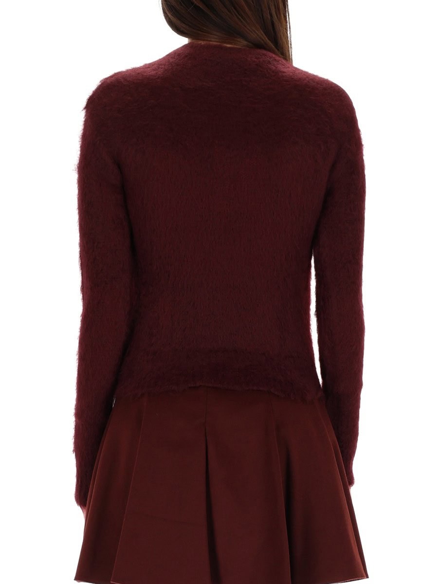 – 67% MOHAIR 30% POLYAMIDE 3% WOOL- MADE IN Italia- THE MODEL IS 180 CM TALL AND WEARS SIZE S