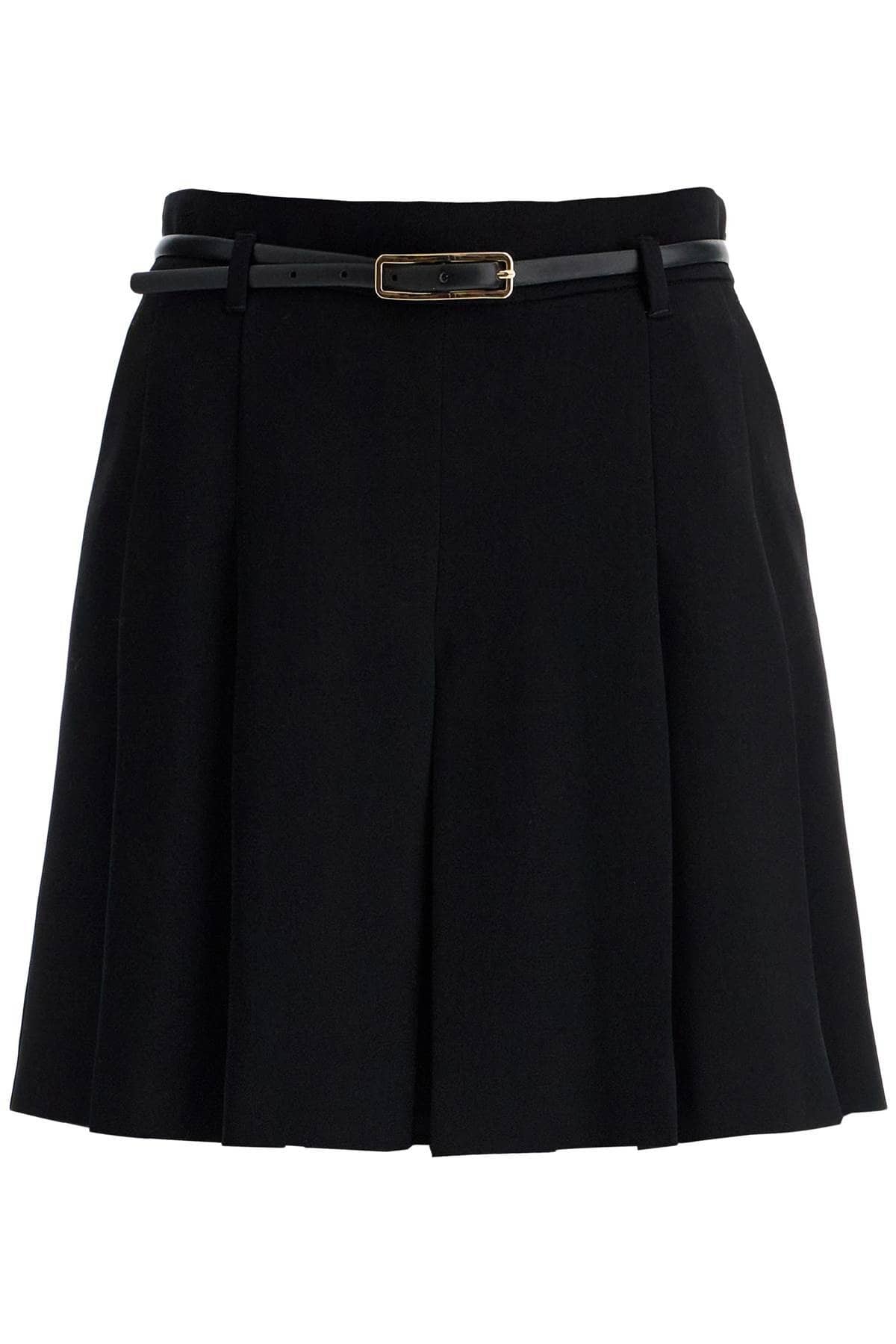 This Max Mara Studio miniskirt-pants is made of technical cady fabric with a pleated design and features a removable belt with buckle at the waist. It has French pockets on the sides and an invisible zip closure on the side. The flared cut adds a touch of elegance. The model is 177 cm tall and wears an IT size 38.