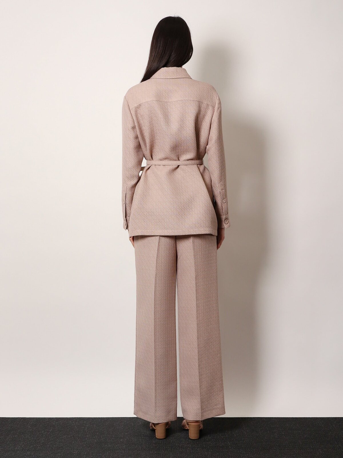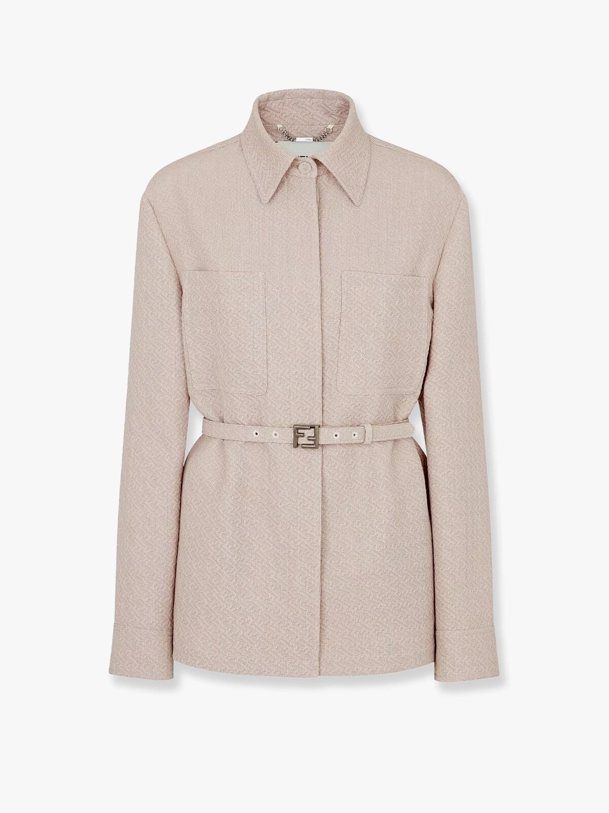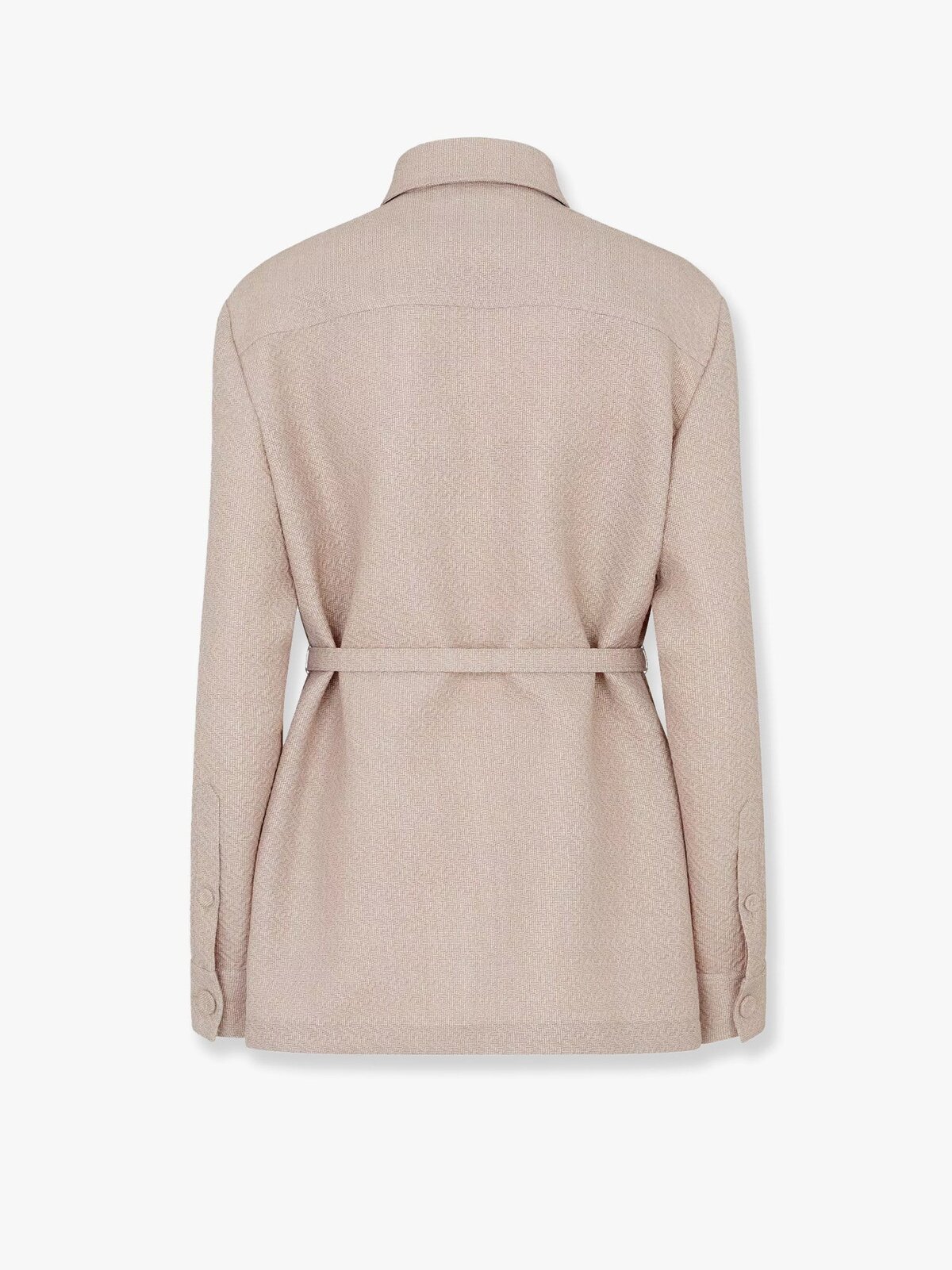 SKU: FJ7561AQ3R_F1SA0 – Hidden closure with covered buttons pointed collar and applied pockets on the front belt with ff metal buckle made in italy 88% virgin wool 12% cash