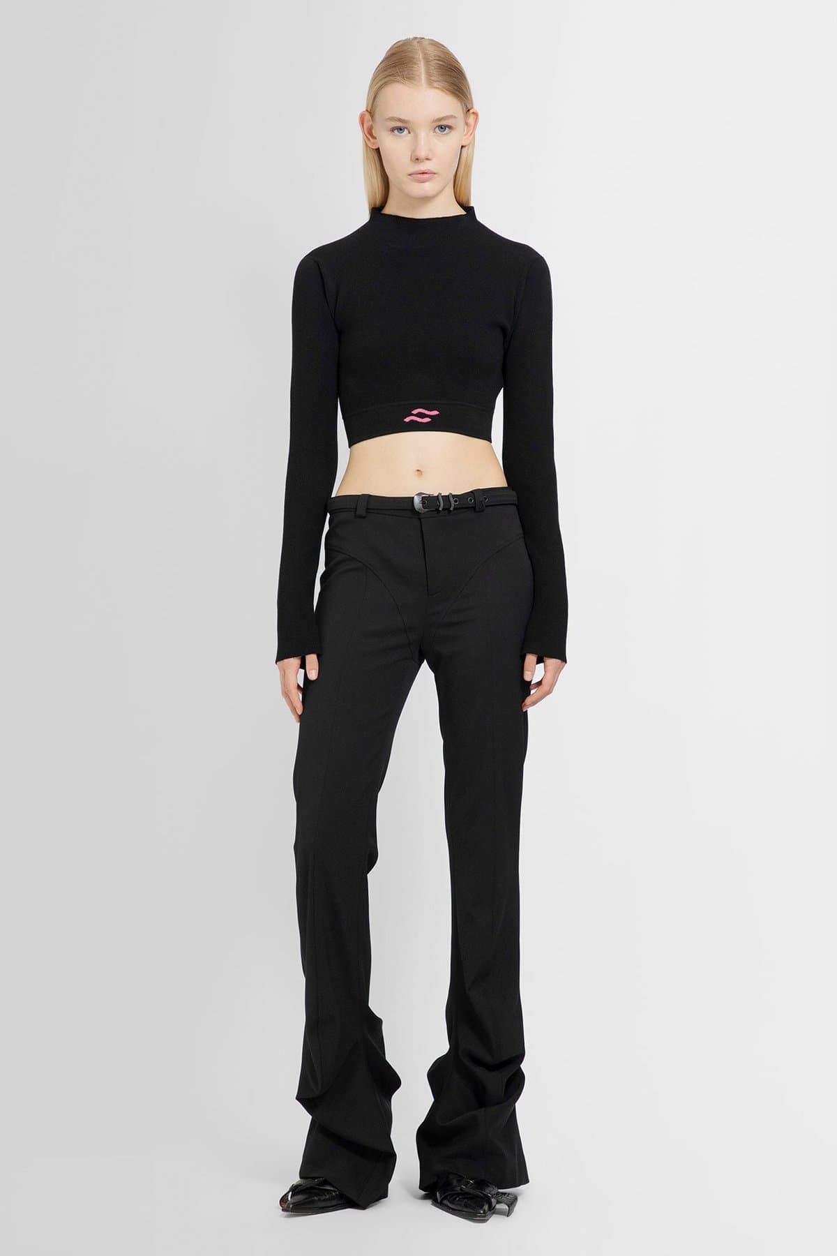Black Turtleneck Long sleeves Cropped hem Elastic logo jacquard waistband