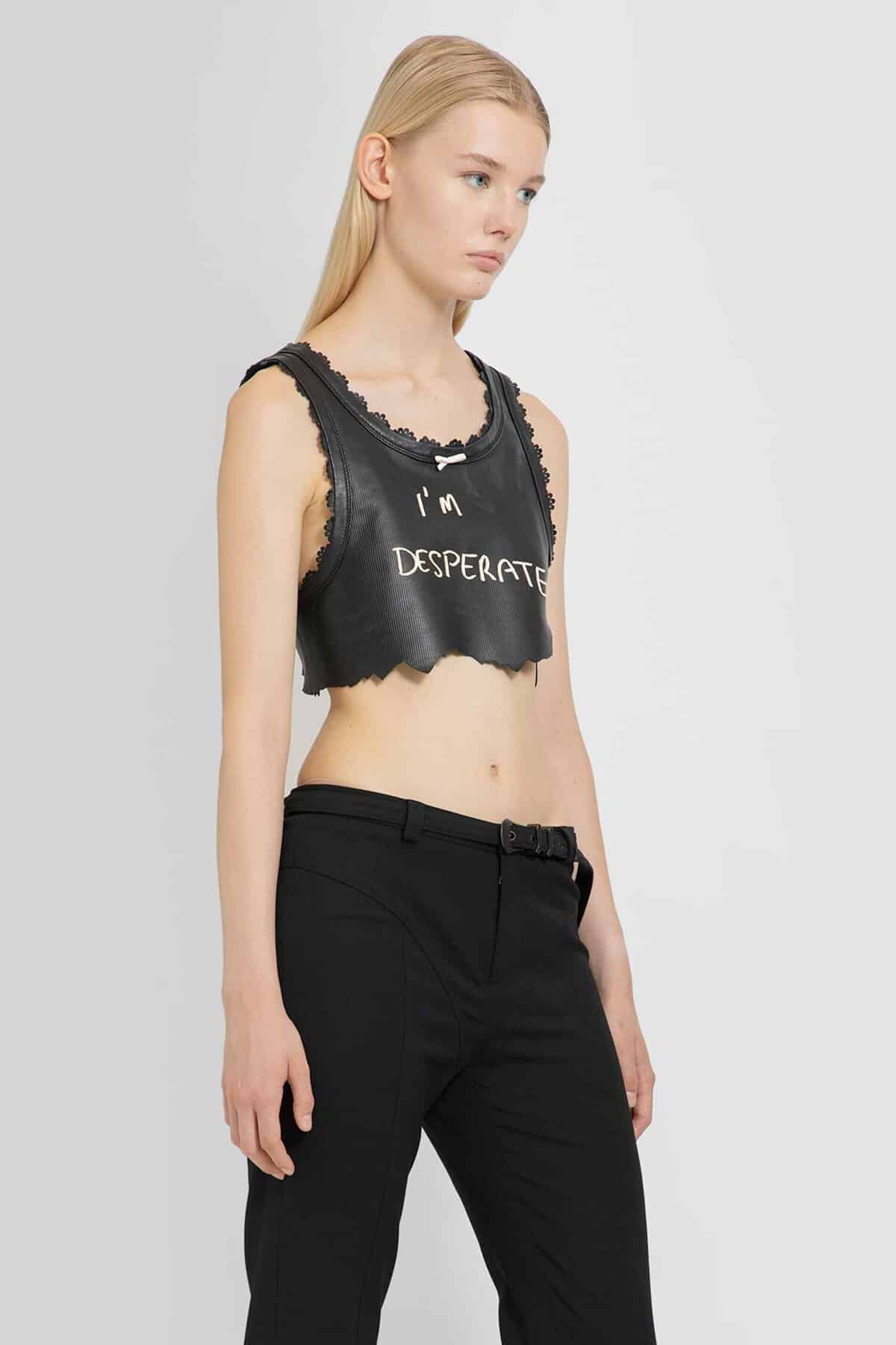 Black Scalloped scoop neck Front bow detail Front i’m desperate print Sleeveless Destroyed, cropped hem