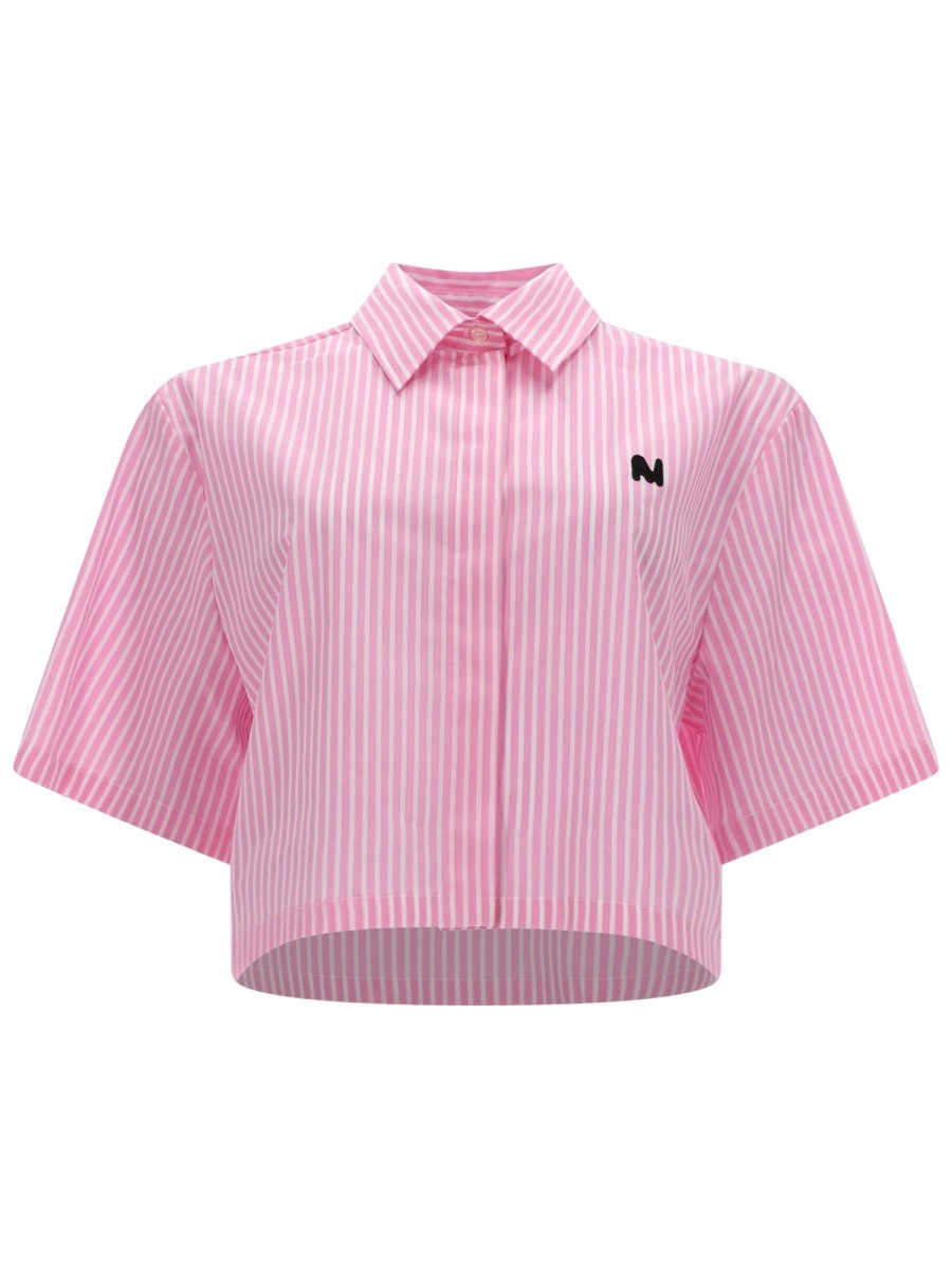 Msgm Camicia Crop Con Logo