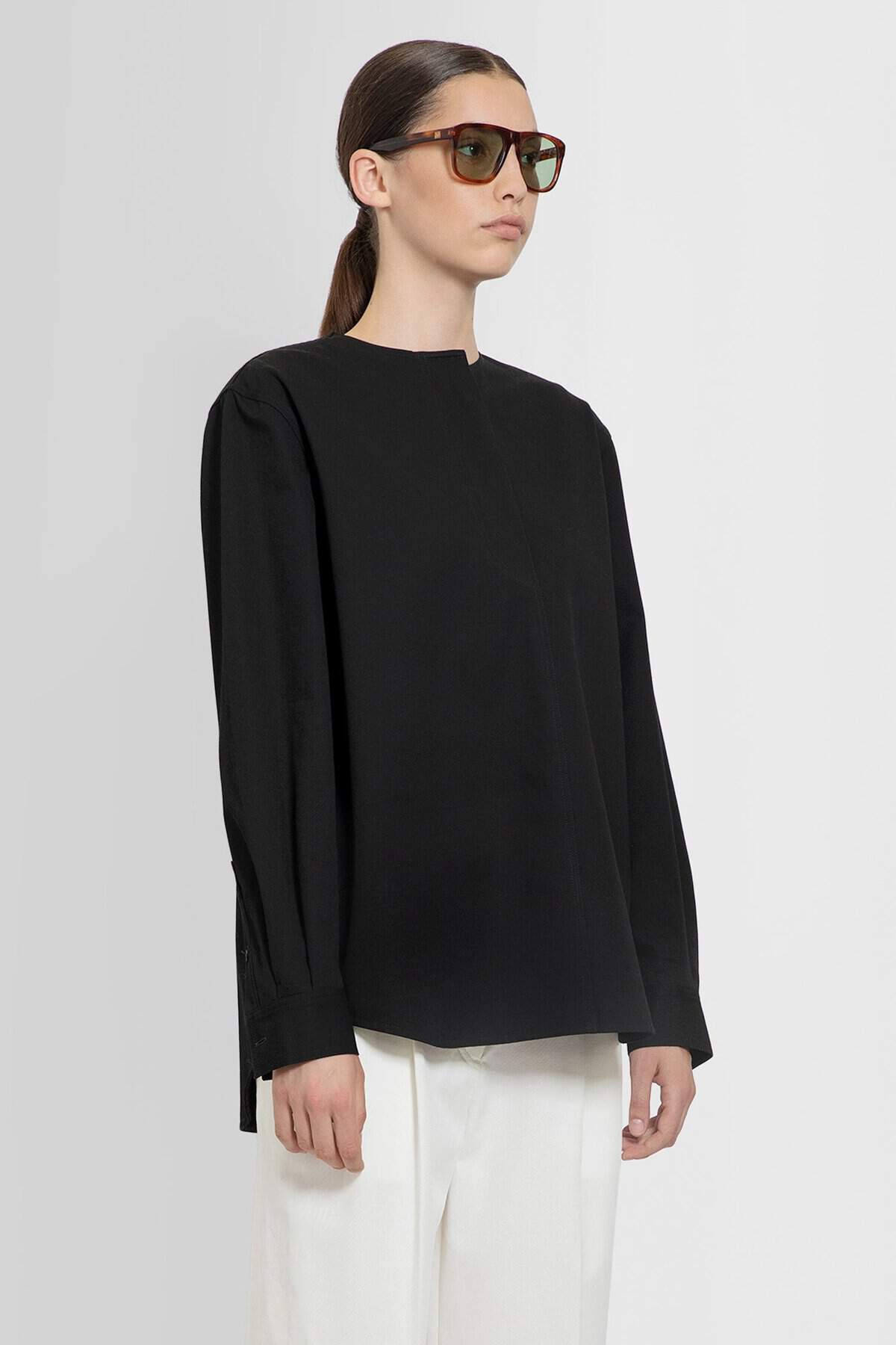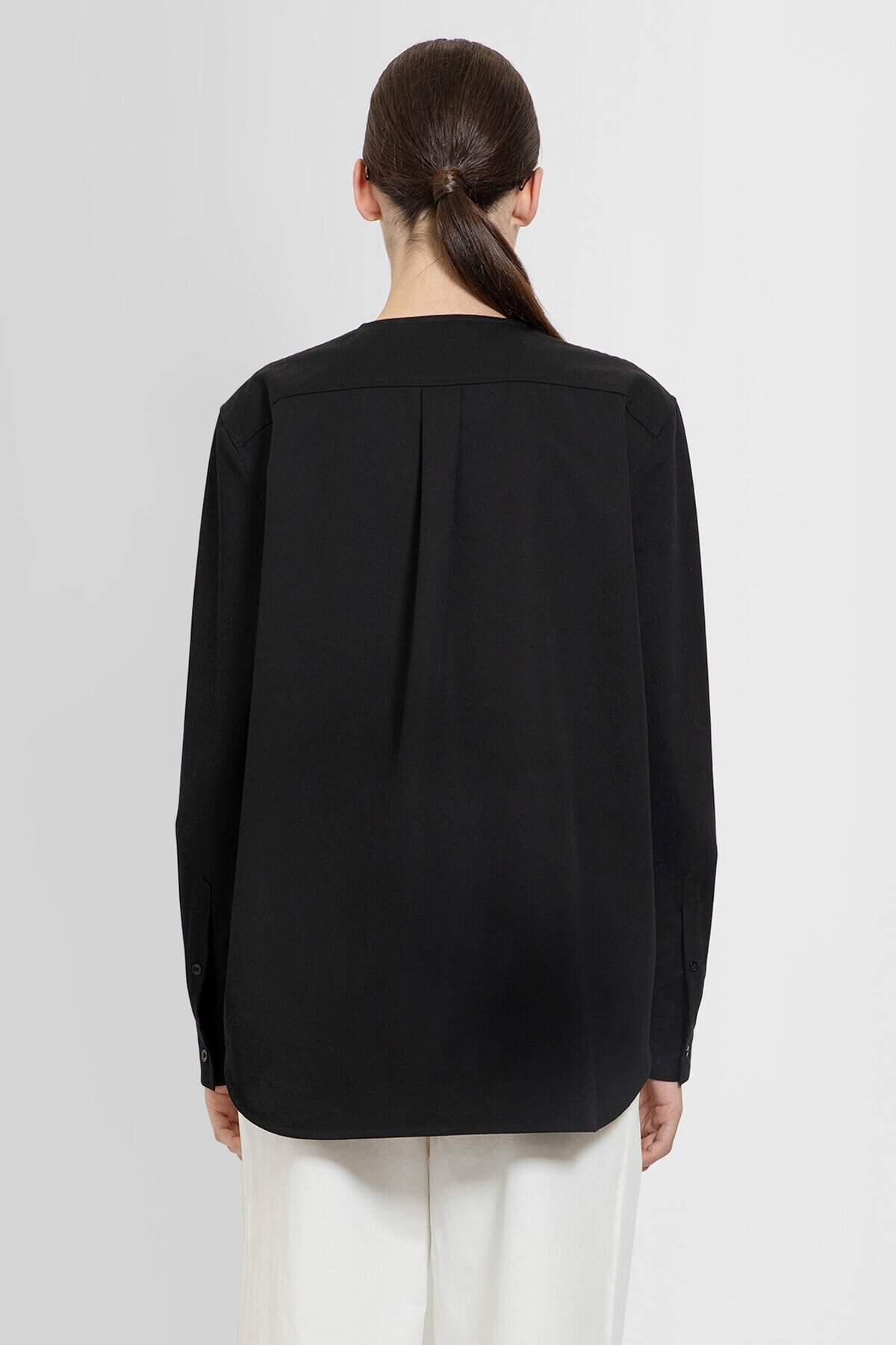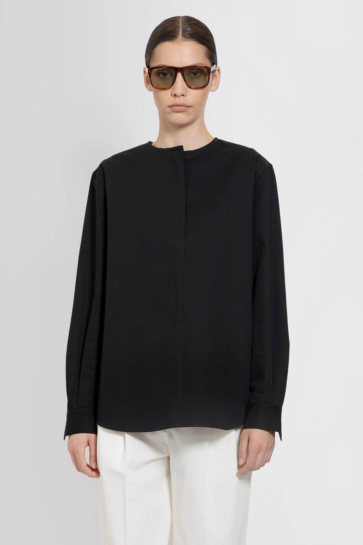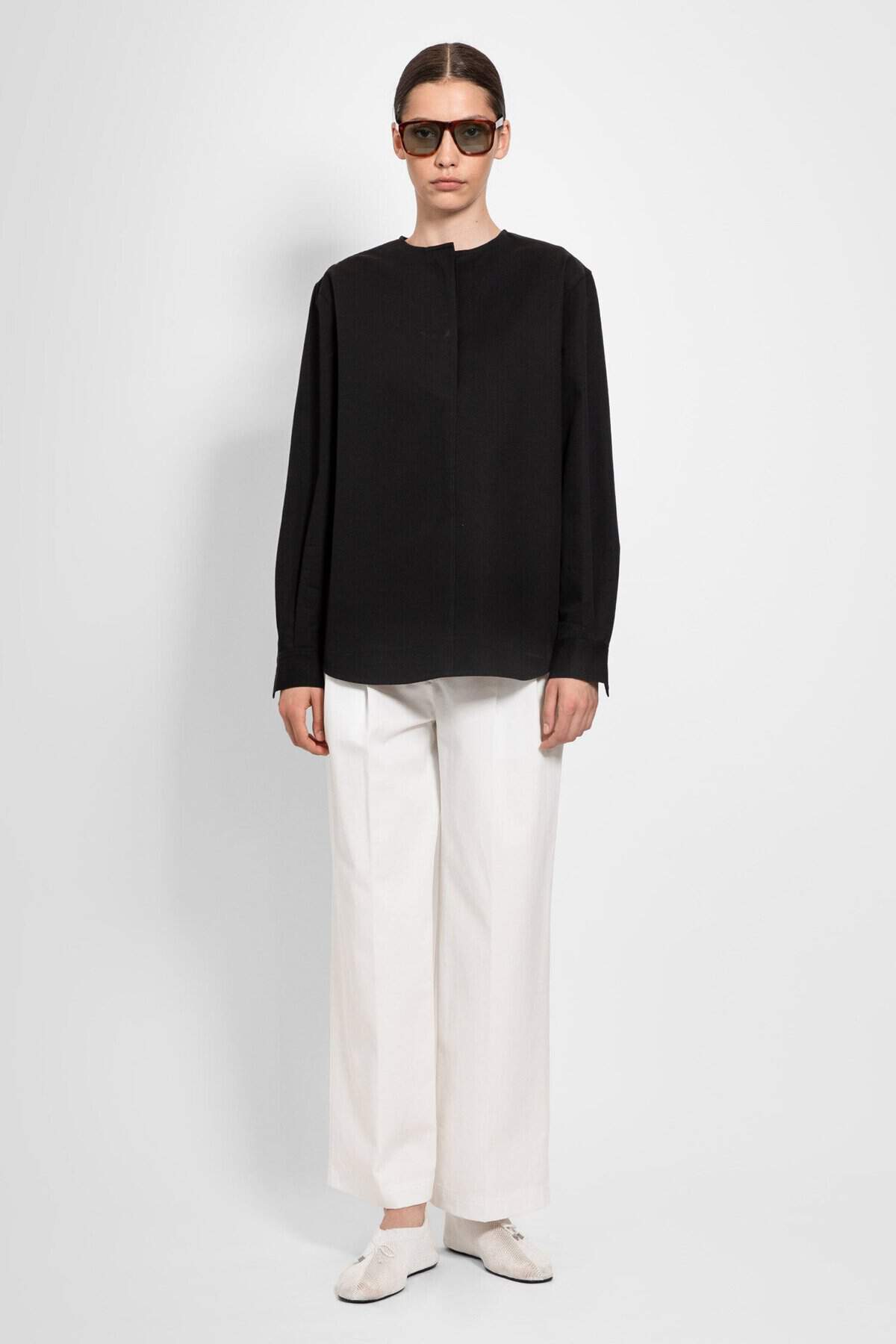 Nero Round neck Concealed button closure Dropped shoulders Long sleeves Buttoned cuffs Dropped back Back box pleat