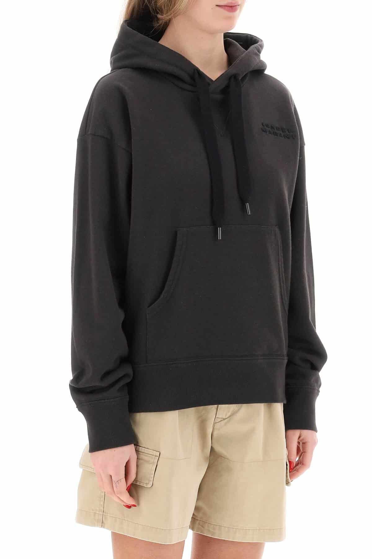 Isabel Marant sweatshirt crafted in faded-effect organic cotton and recycled polyester blend french terry with a small logo embroidery on the chest. It features adjustable hood with drawstring, kangaroo pocket and ribbed trims. Loose fit with dropped shoulders. The model is 177 cm tall and wears size FR 34.