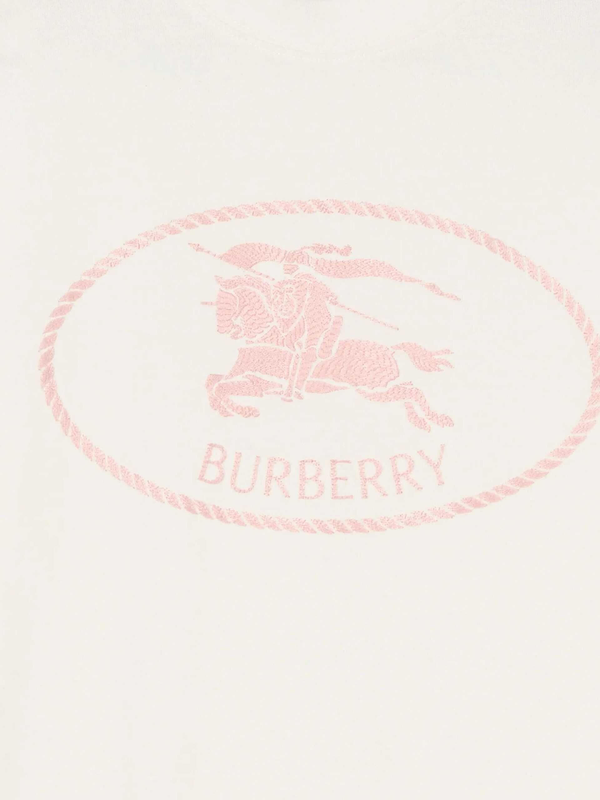 White cotton jersey T-shirt. Features a ribbed crew neck, short sleeves, pink Equestrian Knight Design embroidery on the front. Regular fit.