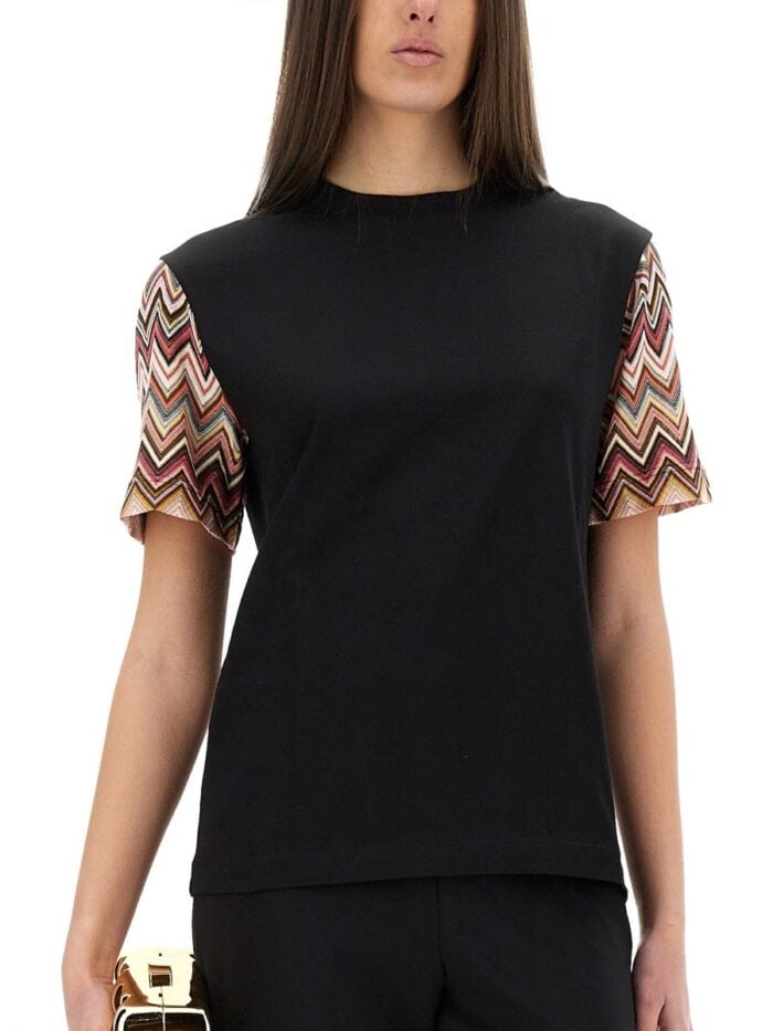 Missoni T-shirt With Zig Zag Knit Sleeves