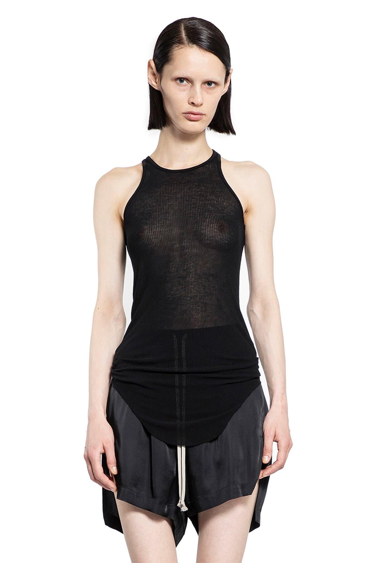 Nero Viscose silk rib jersey Scoop neck Sleeveless Racer back Back signature seam Rounded raw-edge hem