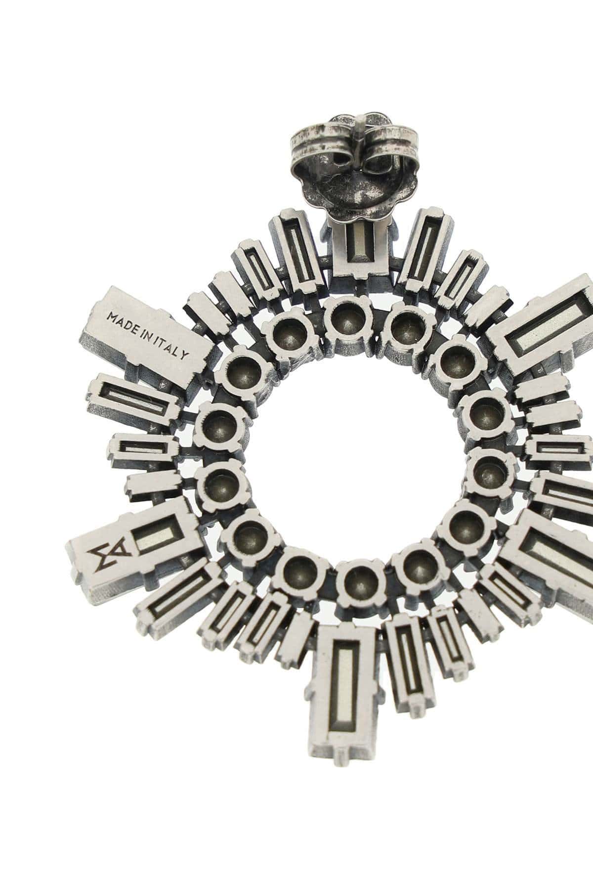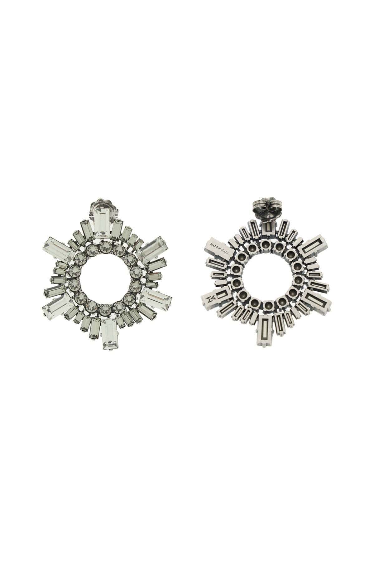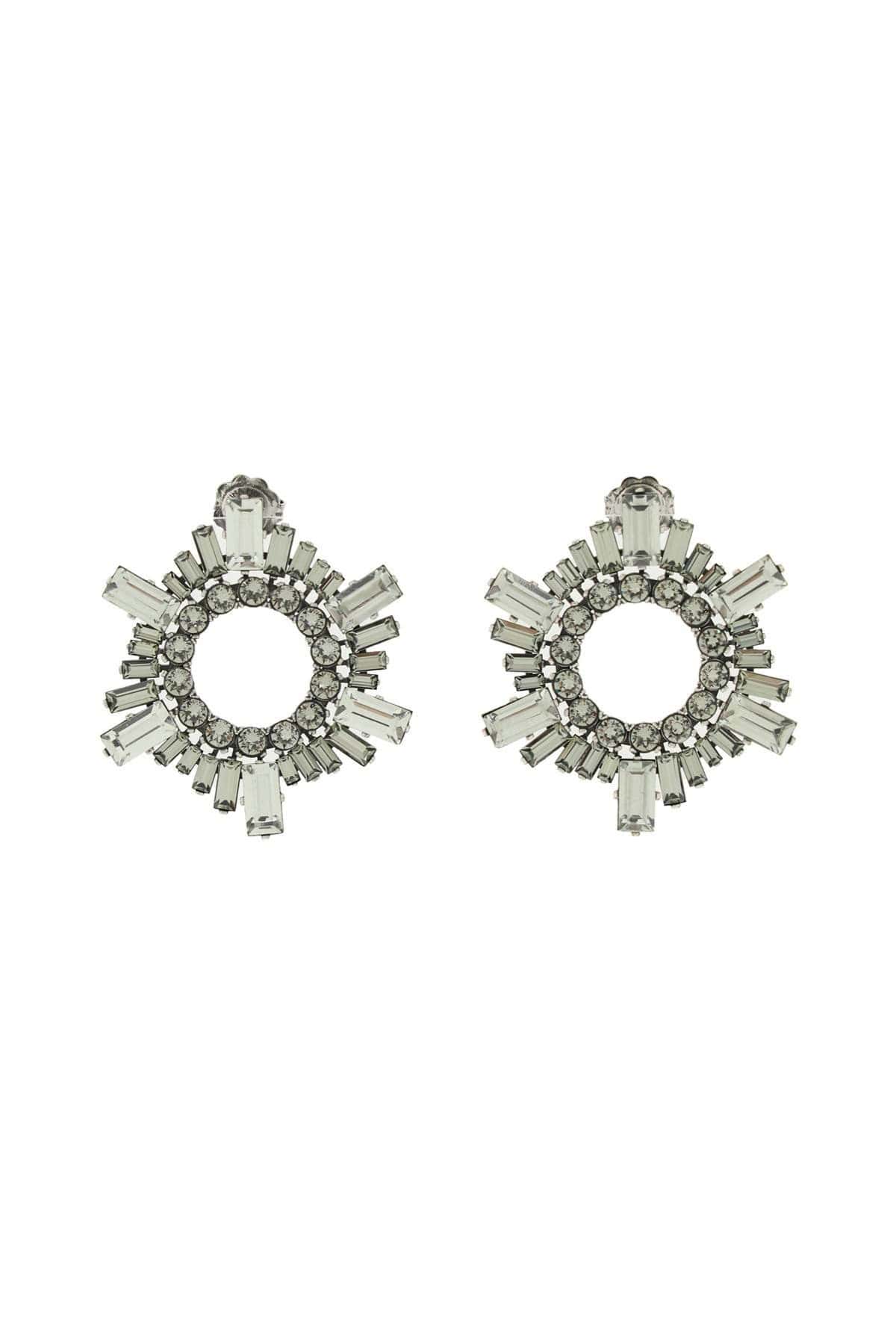 Amina Muaddi earrings made of antique silver-finished brass and embellished with crystals. Featuring the iconic Begum buckle shape. Butterfly back closure, suitable for pierced ears.