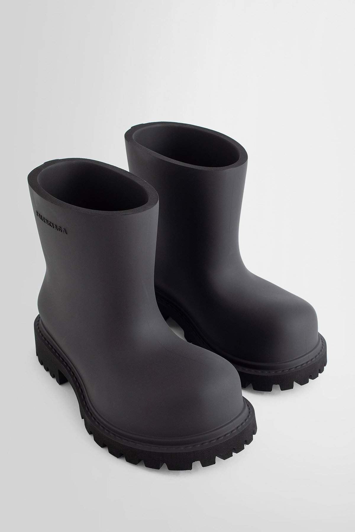Nero Extra round toe Side debossed logo Cleated rubber sole Block heel Exaggerated volume