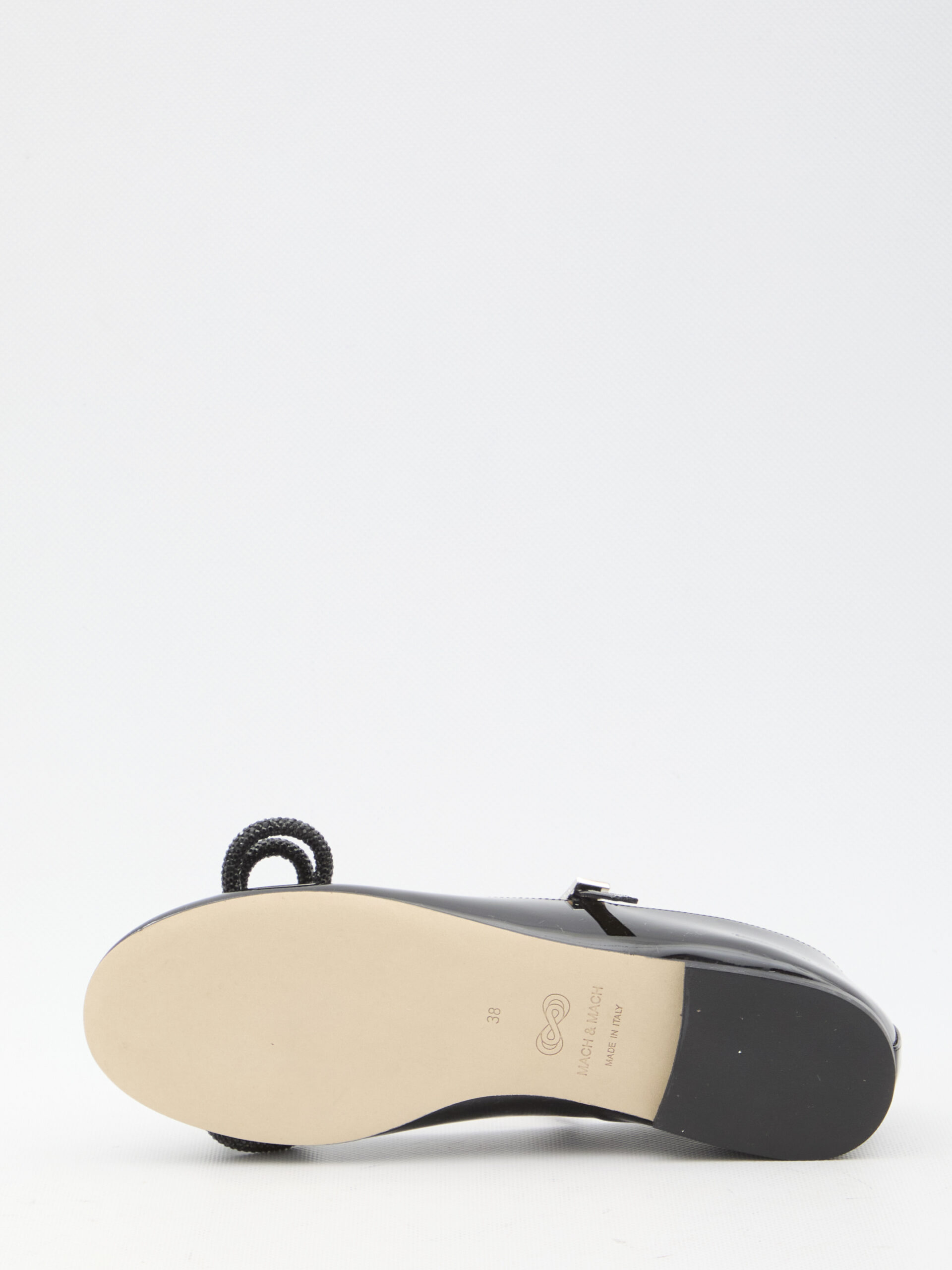 Double Bow ballerinas in black patent leather with crystal double bow on the front. They feature round toe, adjustable strap and leather sole. Any leather imperfections are not to be considered manufacturing defects, but a peculiarity of the material.