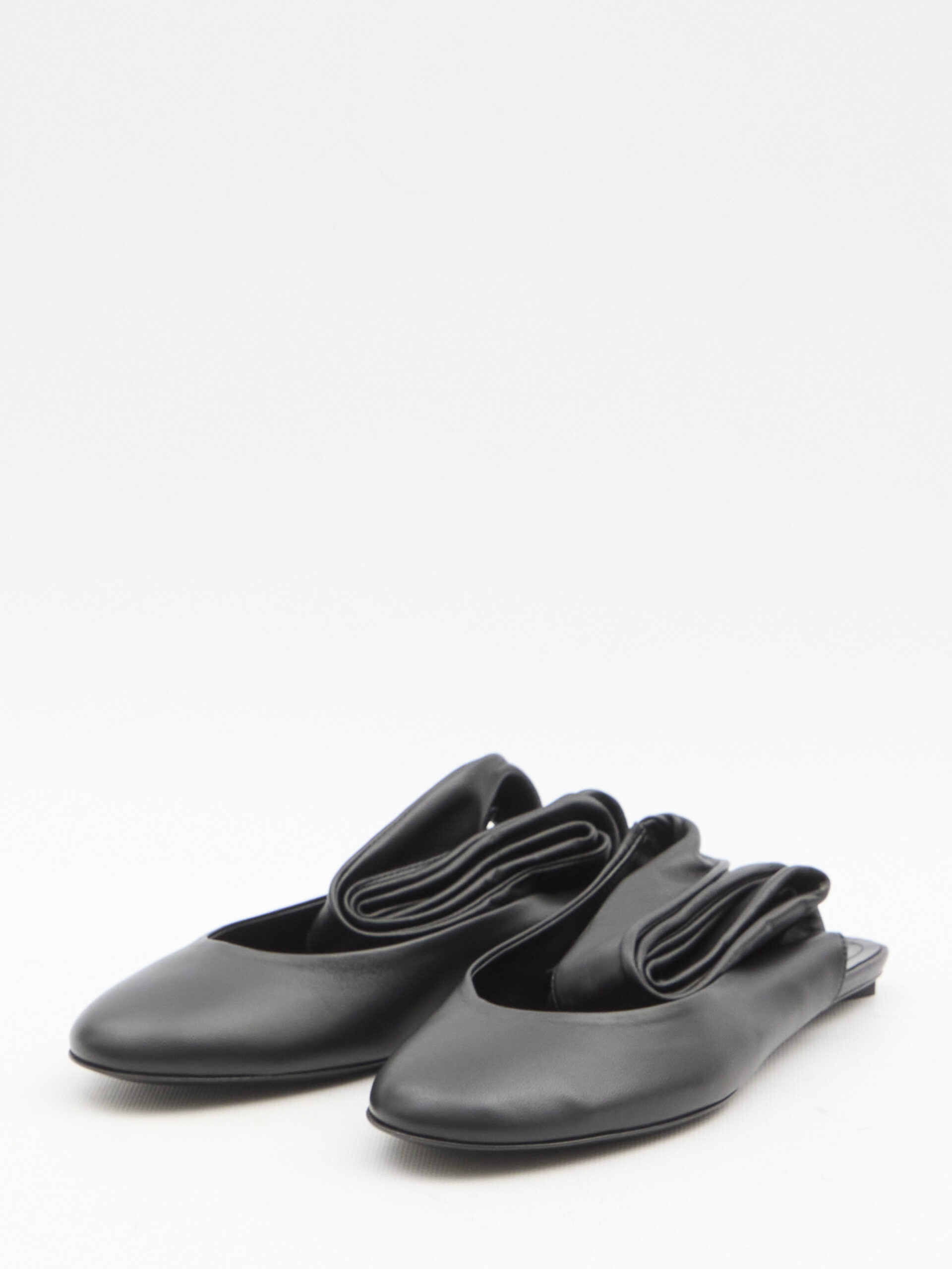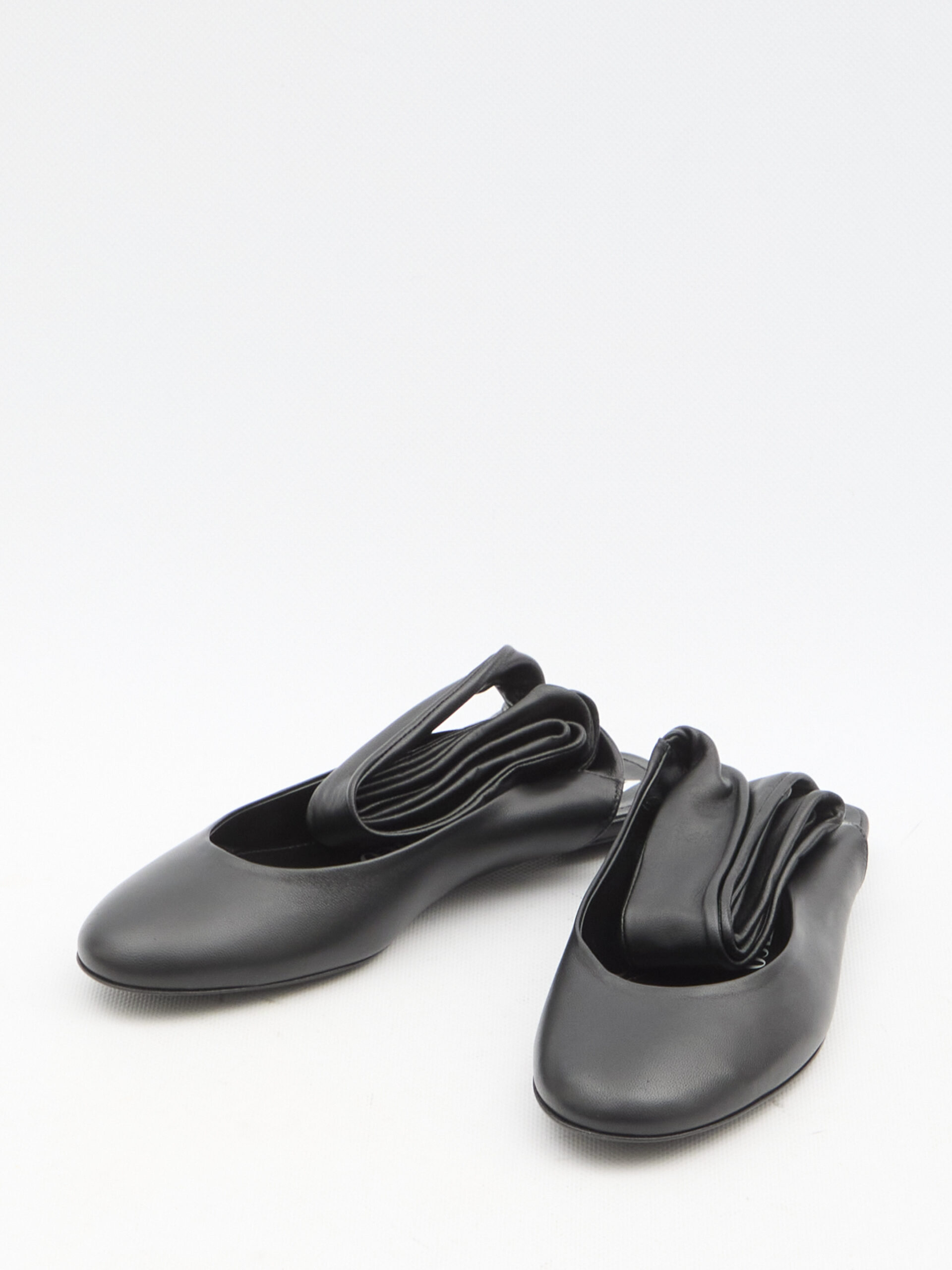 Cloe ballerinas in black lambskin nappa. They feature self-tie closure at ankles, logo heel and leather sole. Any leather imperfections are not to be considered manufacturing defects, but a peculiarity of the material.