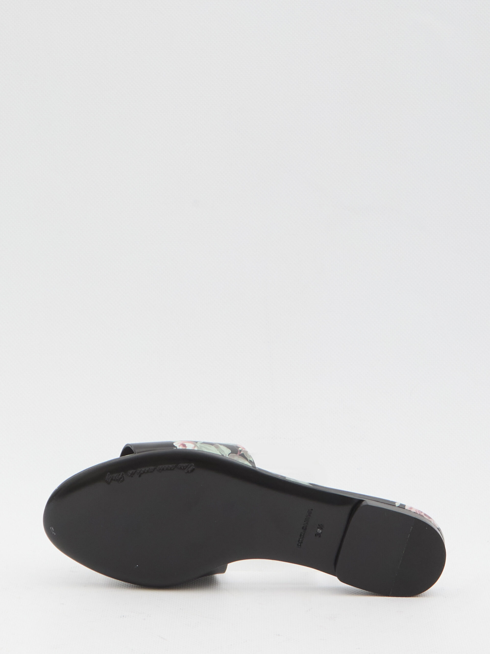 Black floral print slide sandals with DG cut-out logo. Embossed rubber insole. Dust bag included. Any rubber irregularities are not manufacturing defects, but a material feature.