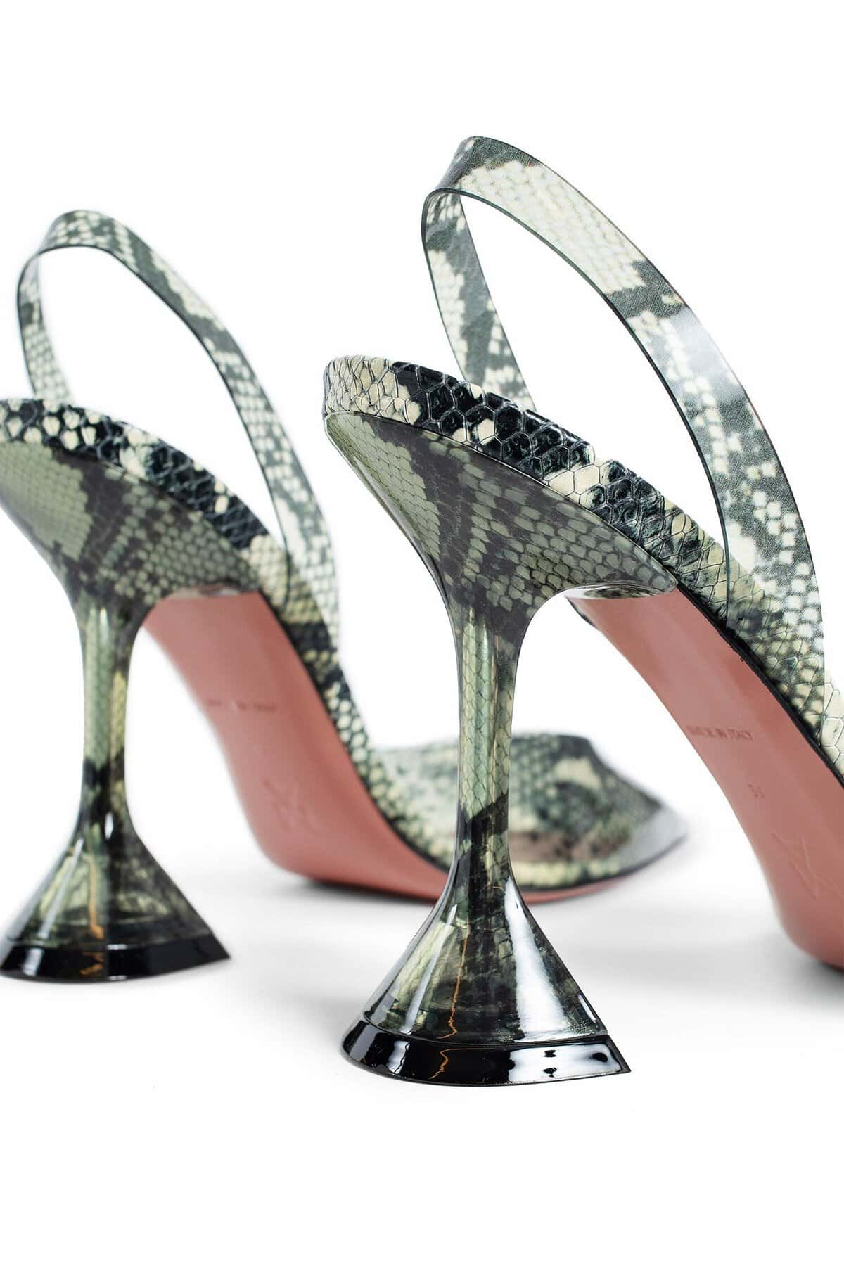 Multicolore Black/greensnake printed pvc Pointed toe Slingback strap Leather sole Plexiglass pyramid heel