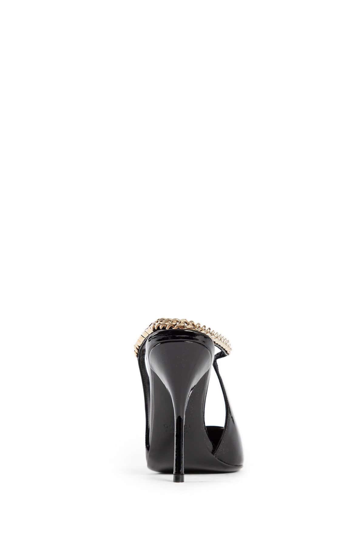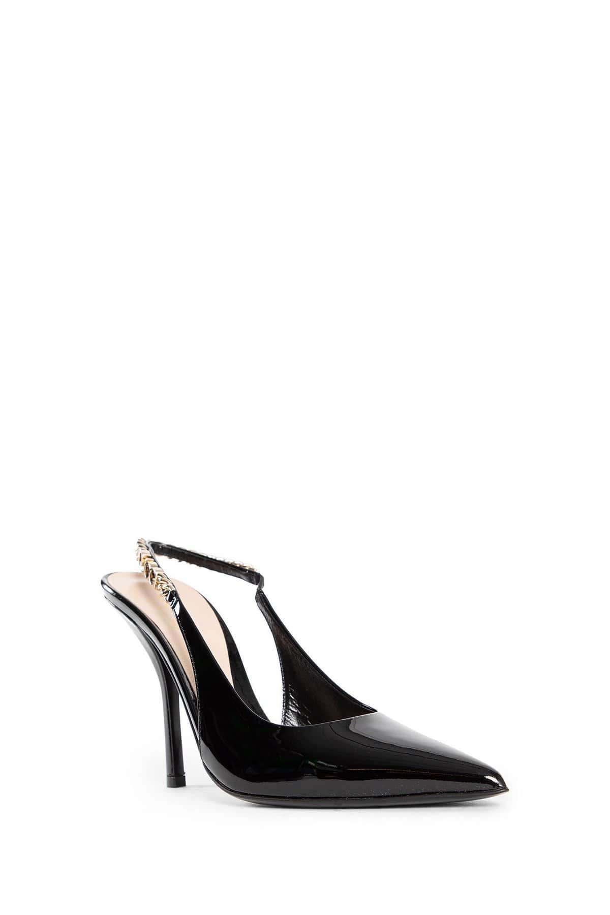 Nero Patent leather Hand-stitched gold-metal gucci chain Elasticated slingback strap Pointed toe Leather sole Stiletto heel