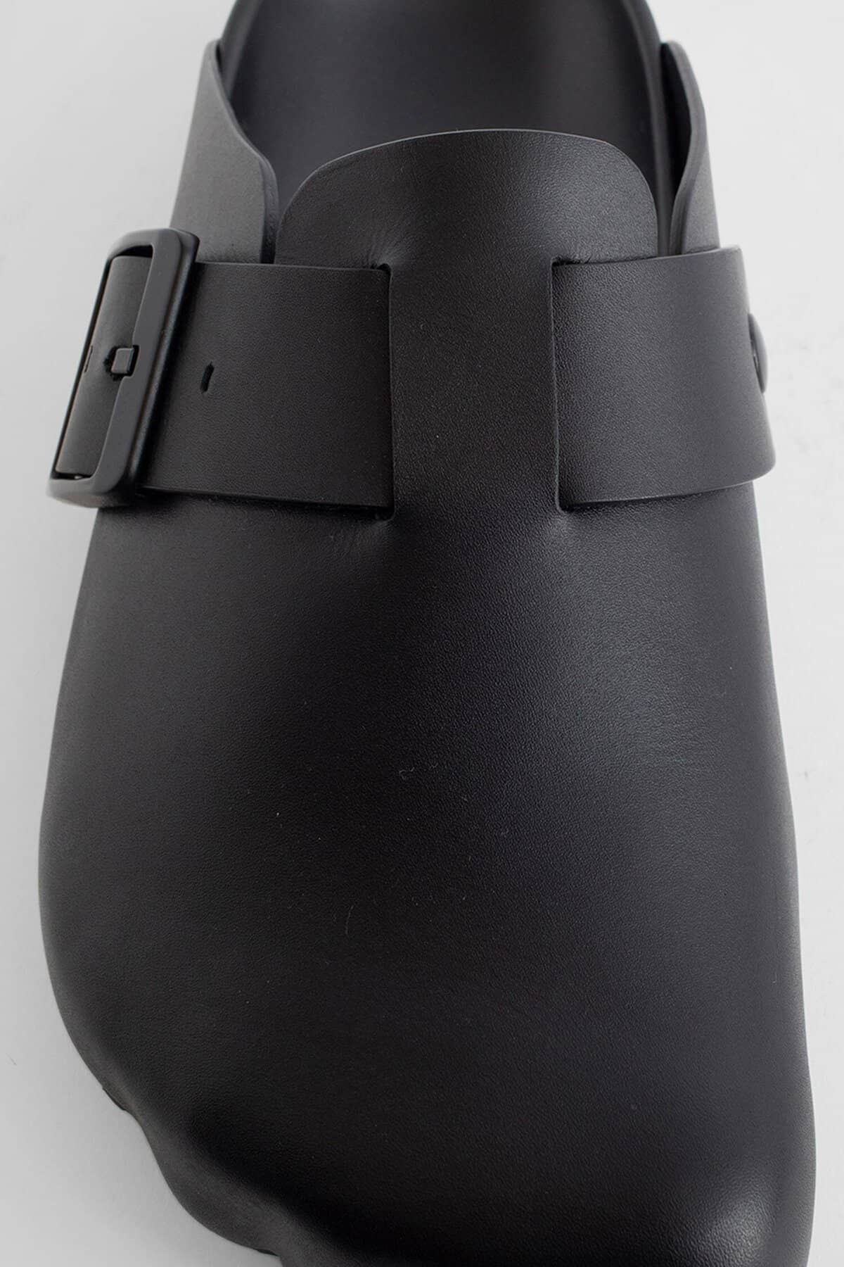 Runway style Black Smooth leather Front engraved buckle strap Five finger shape toe Rubber sole