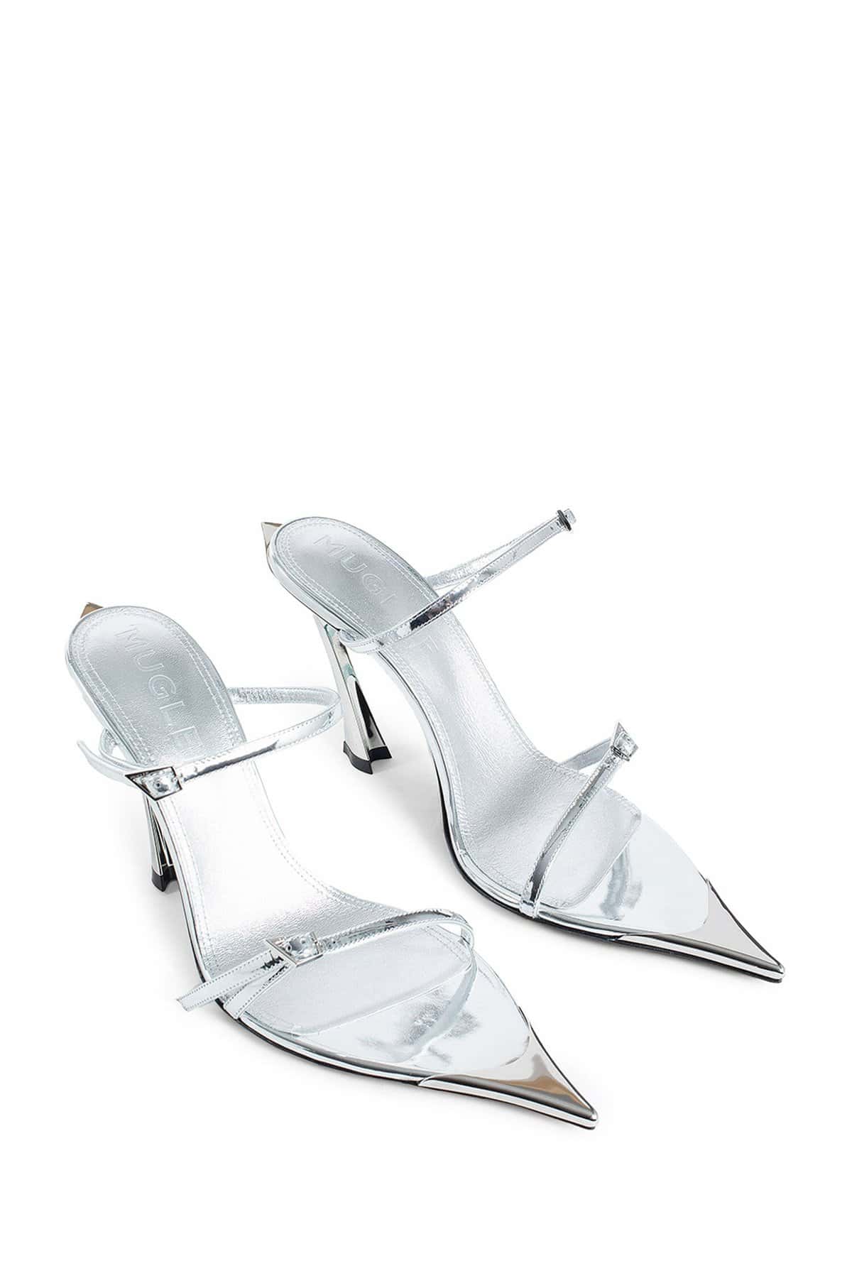 Mugler Strappy Fang Metallic Leather 95 Mules