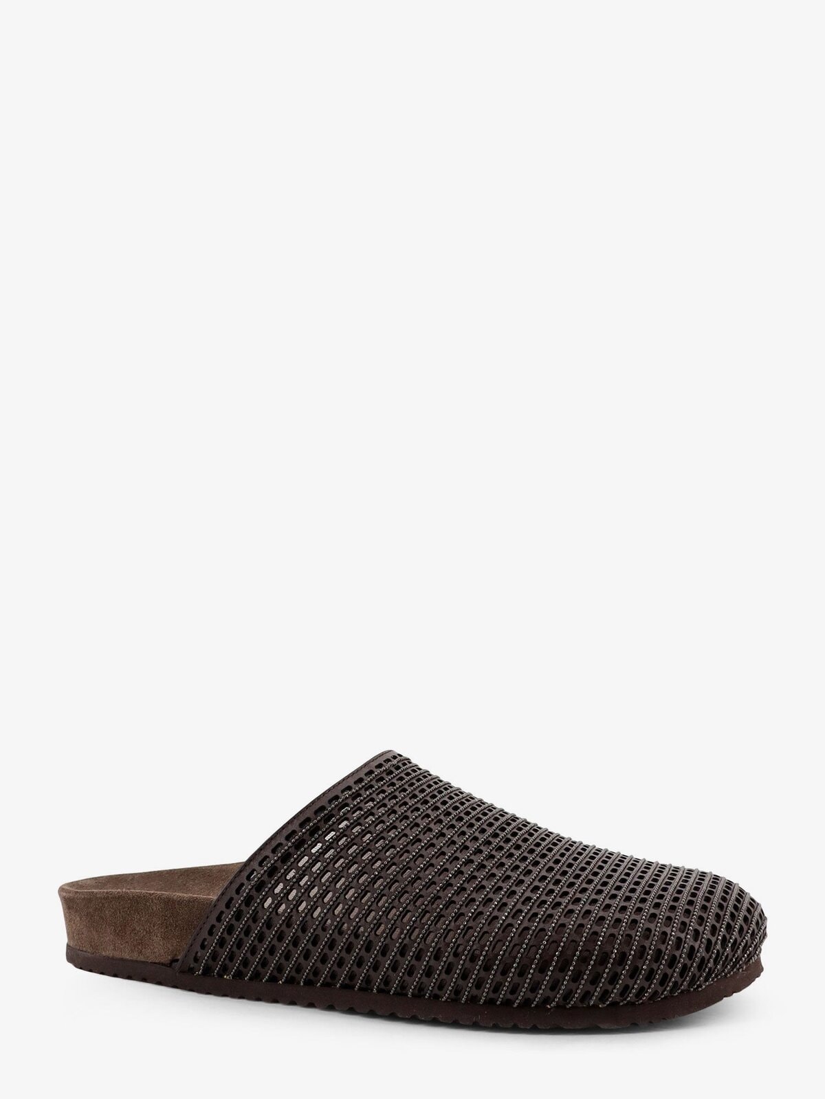 Brunello Cucinelli Leather Sandals With Precious Net Detail