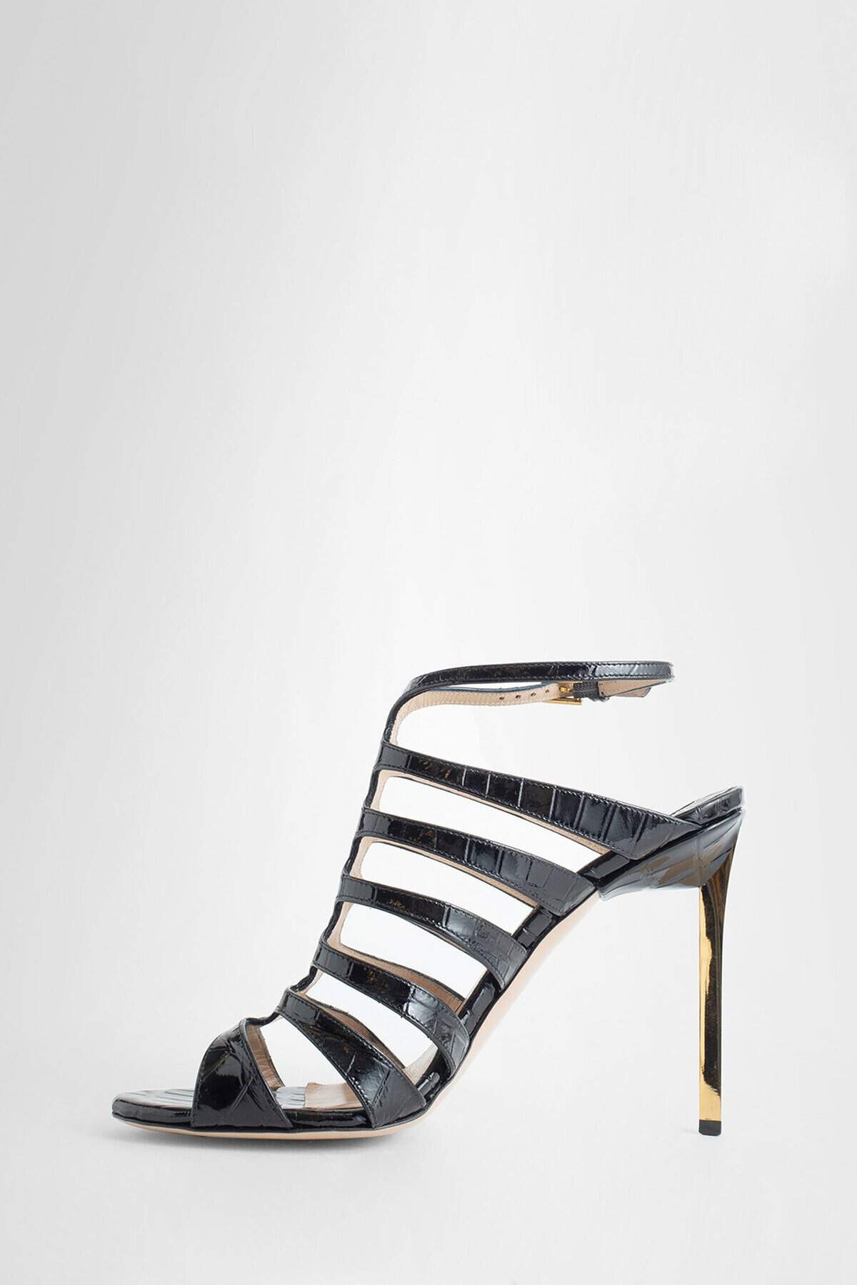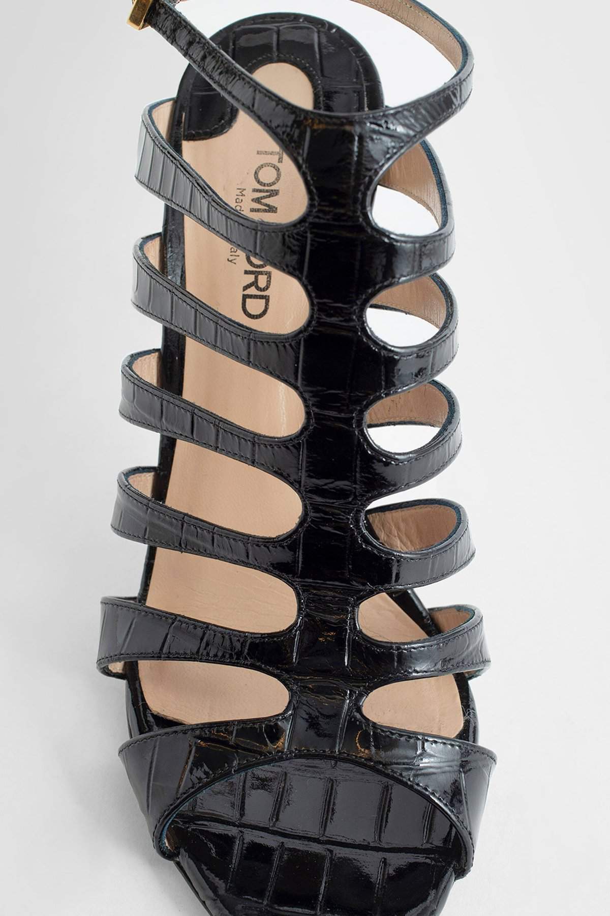Black Embossed crocodile leather Buckled ankle strap Gold-metal stiletto heel