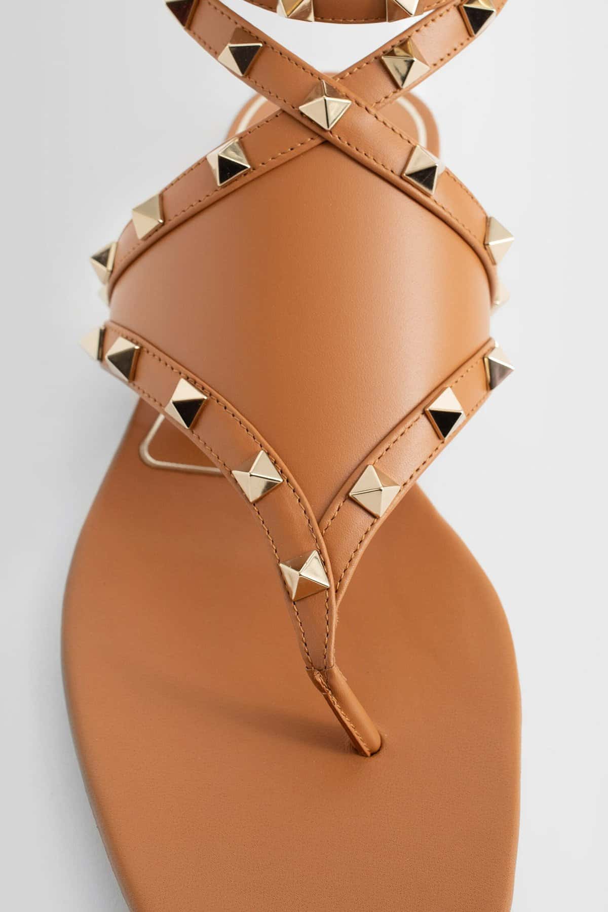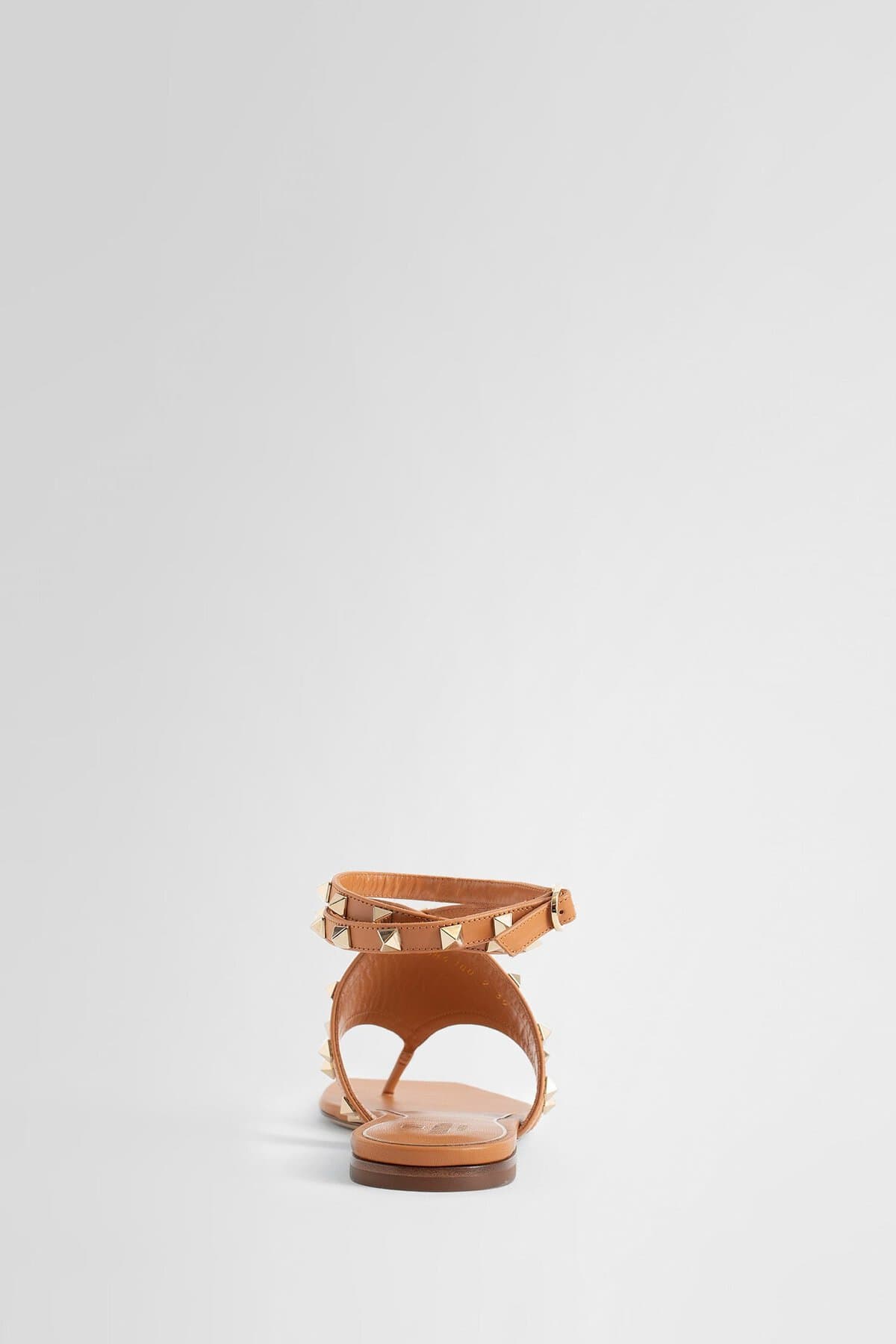 Tan brown Rockstud trim Square toe Wrap-around buckled ankle strap Leather sole