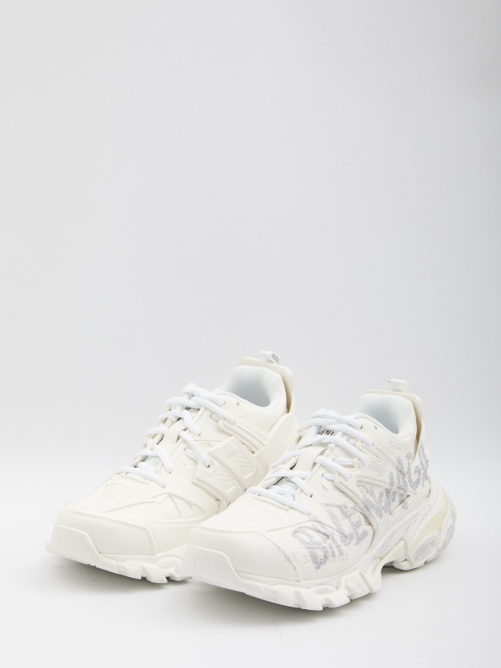 Sneakers in white polyurethane and polyester. Featuring size printed on the toe, embossed Track logo on the back of the heel, embossed BB logo on the front of the sole, Balenciaga logo on the outer side, printed logo on the tongue, double laces, pull tabs on the heel and tongue. Dustbag included.