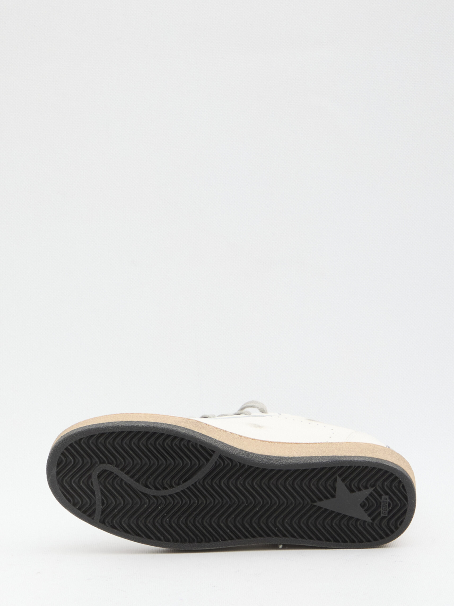 Ball Star sneakers in vintage white leather with side glitter silver star and glitter silver heel. Perforated toe, lace-up closure, GGDB/BALLSTAR logo on the side and embossed Sneakers lettering at the back. Rubber sole. Any leather imperfections are not to be considered manufacturing defects, but a peculiarity of the material.