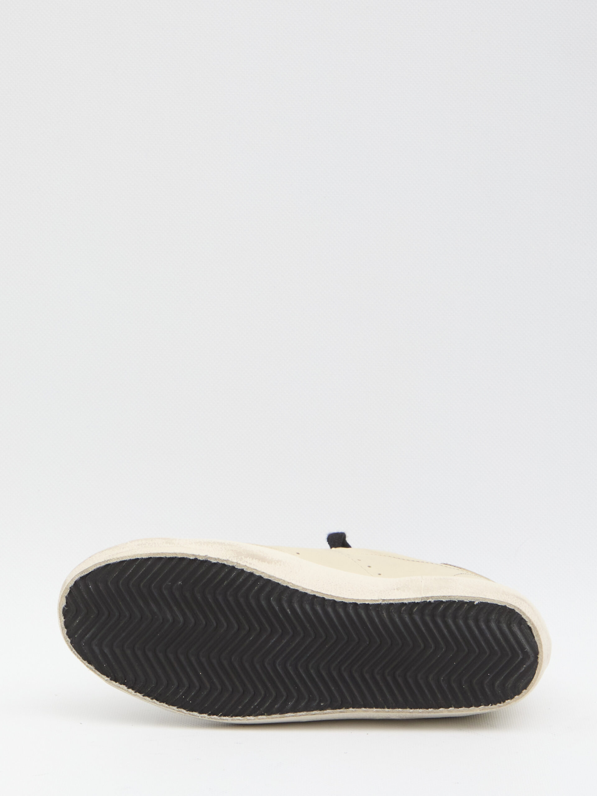 Super Star sneakers in nappa leather with gold glitter on the tongue and toe. Featuring a leopard-print pony hair star on the side and black lace-up closure. Vintage finish. Dustbag included. Any leather imperfections are not manufacturing defects but a characteristic of the material.