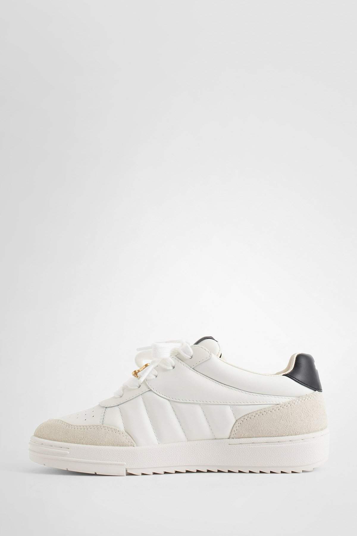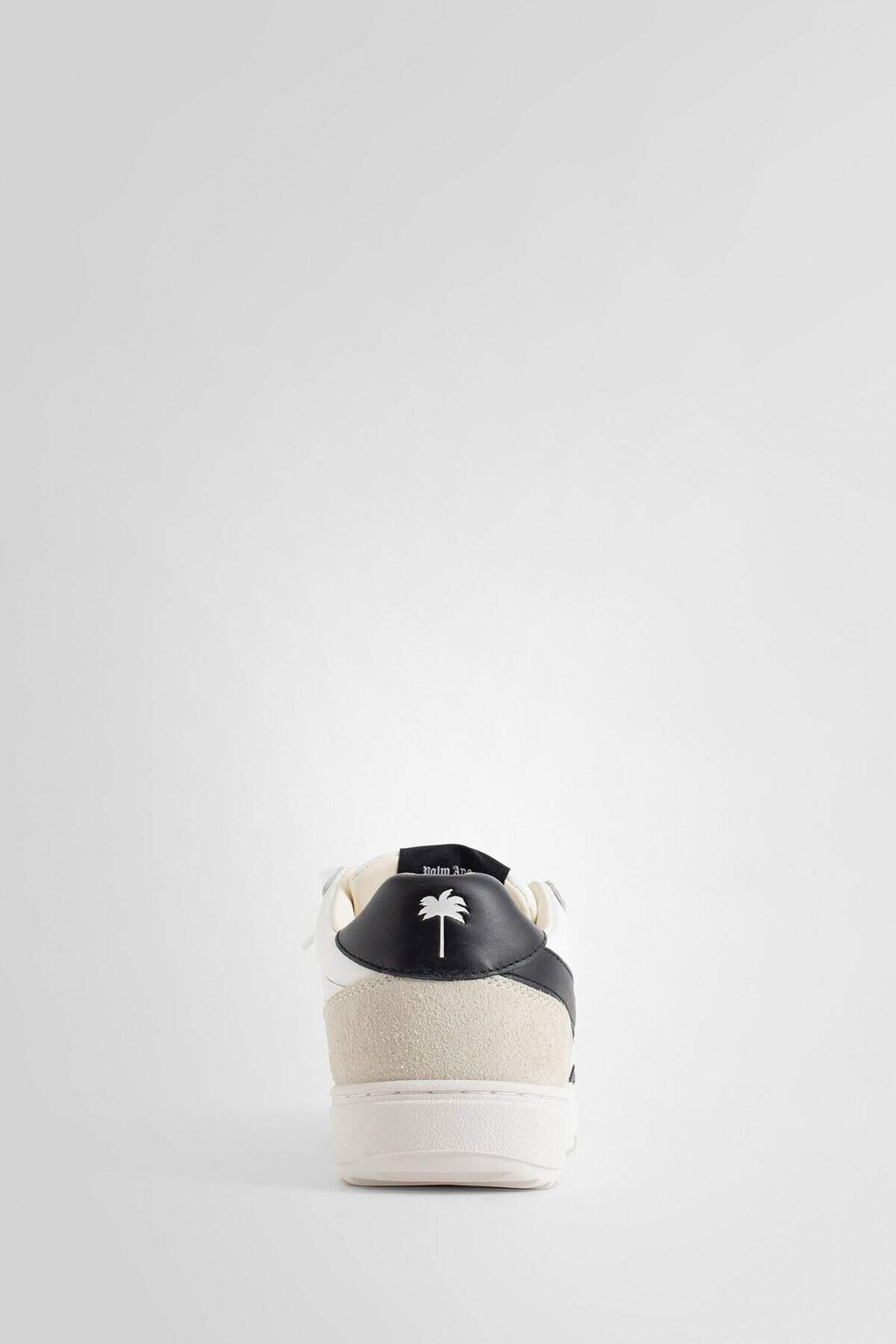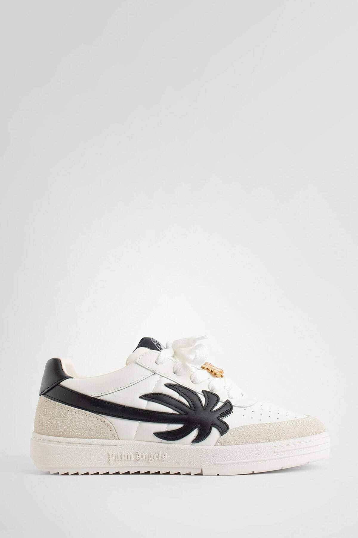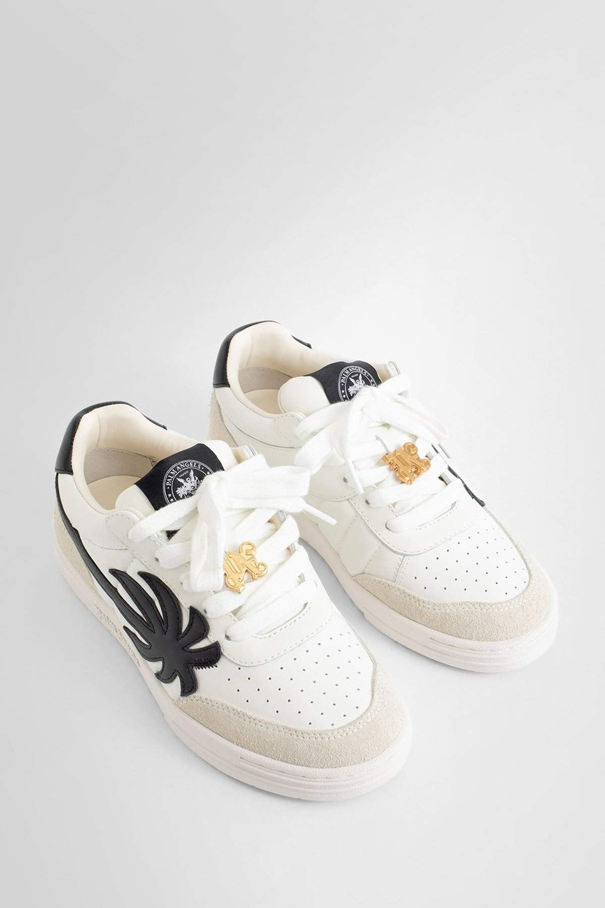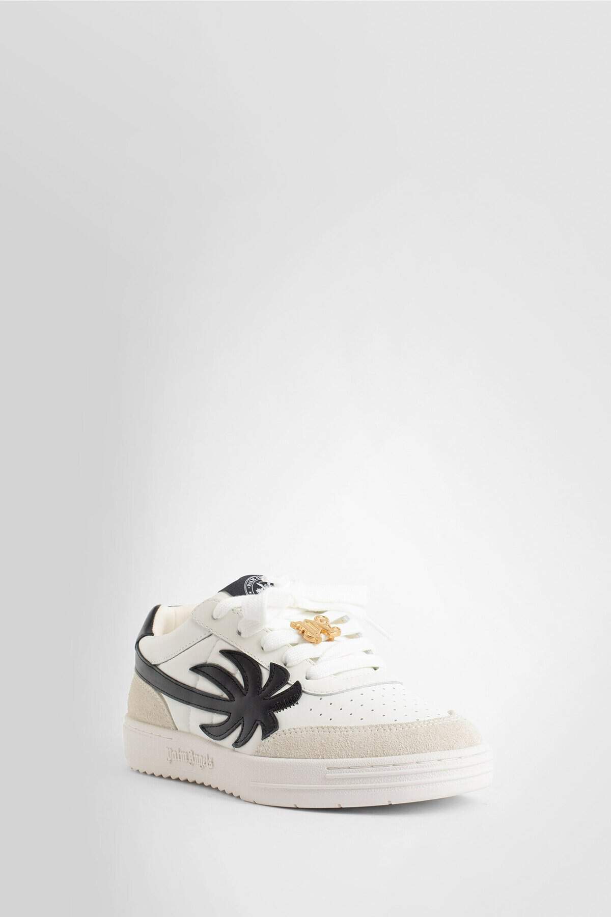 Bianco Leather and suede Lace closure with gold-metal monogram toggle Side signature palm patch Rubber sole